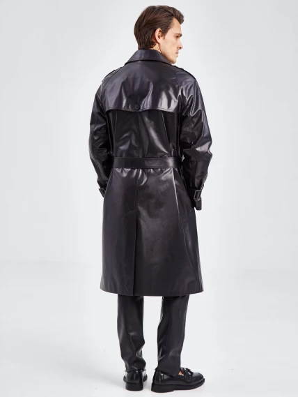 Двубортное мужское кожаное пальто премиум класса 553, черное, размер 52, артикул 71340