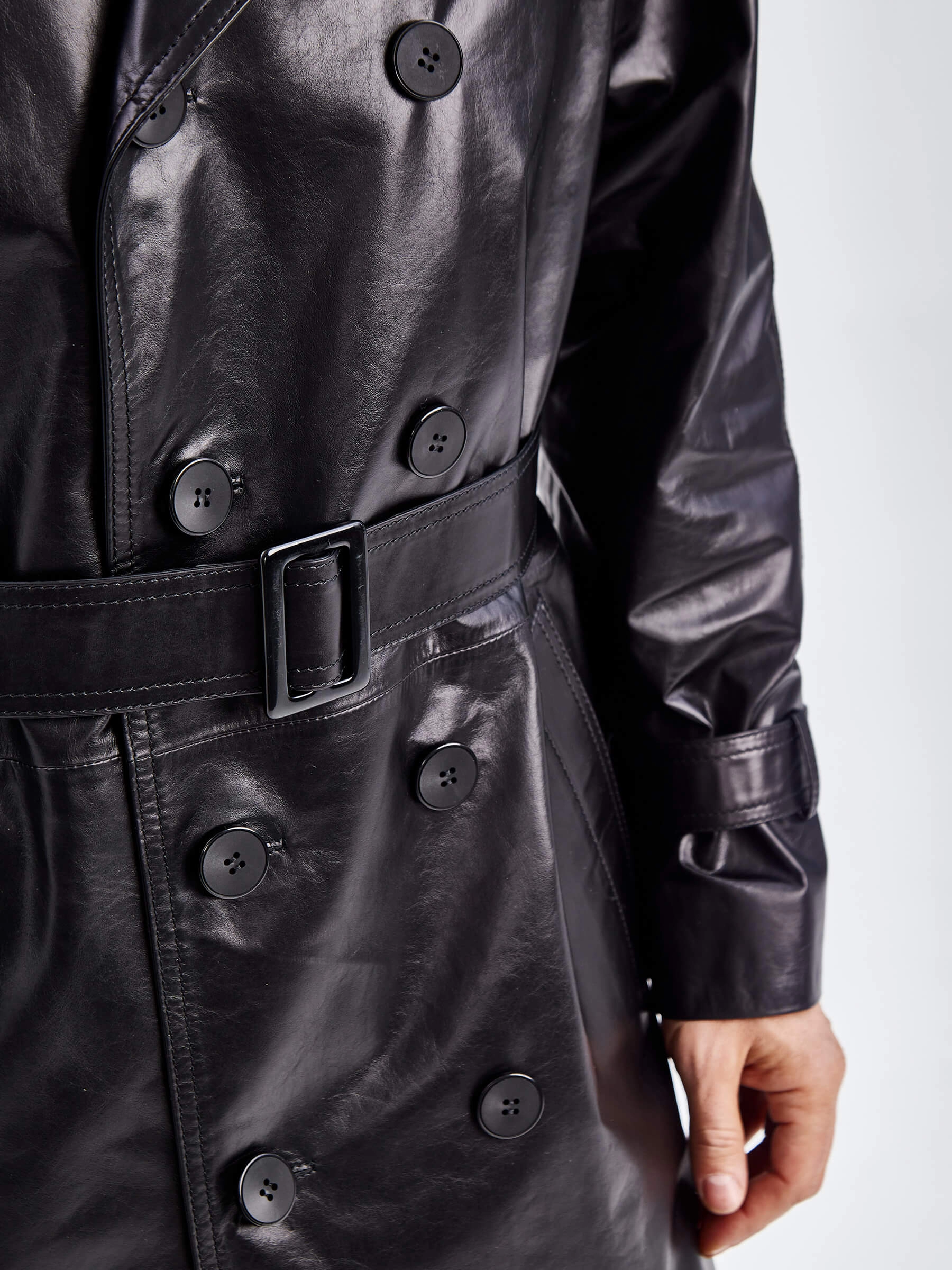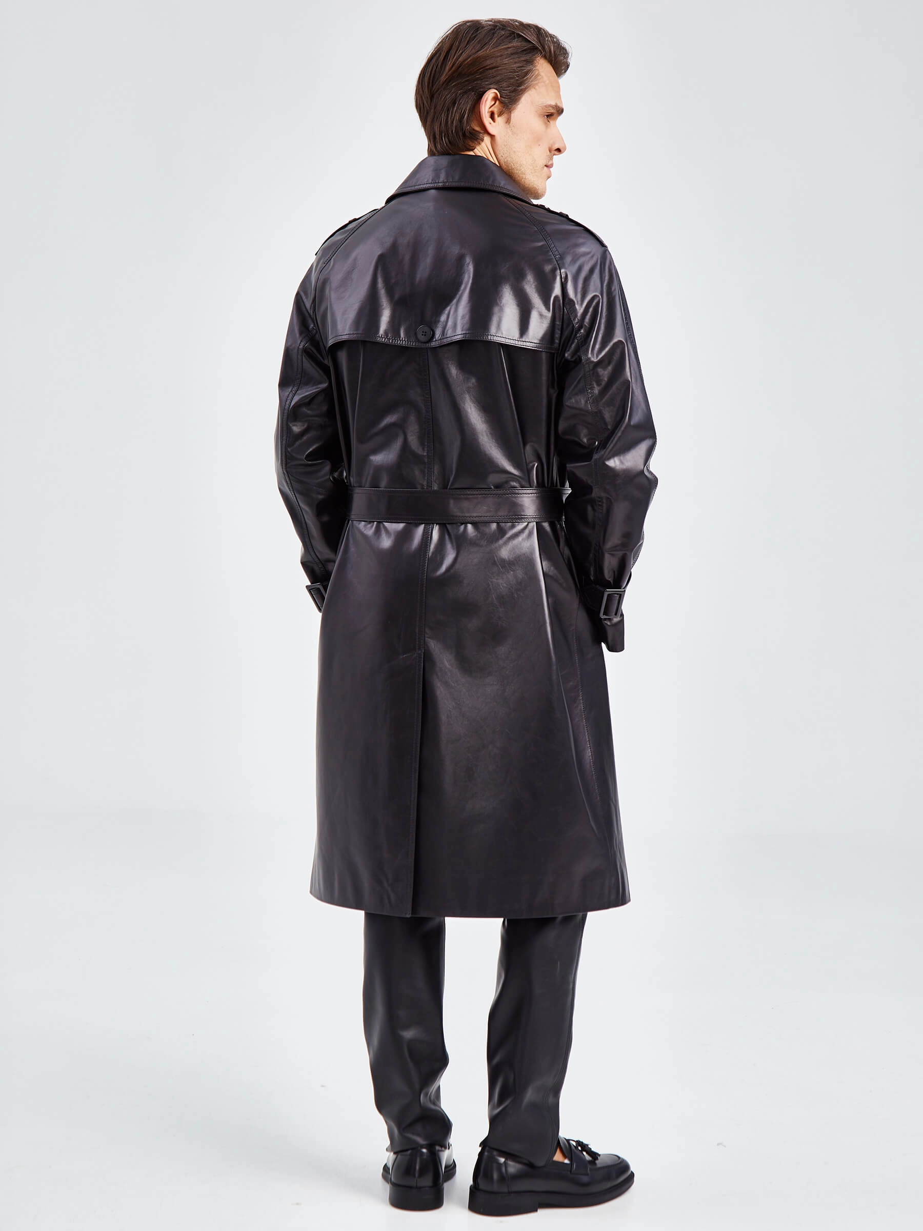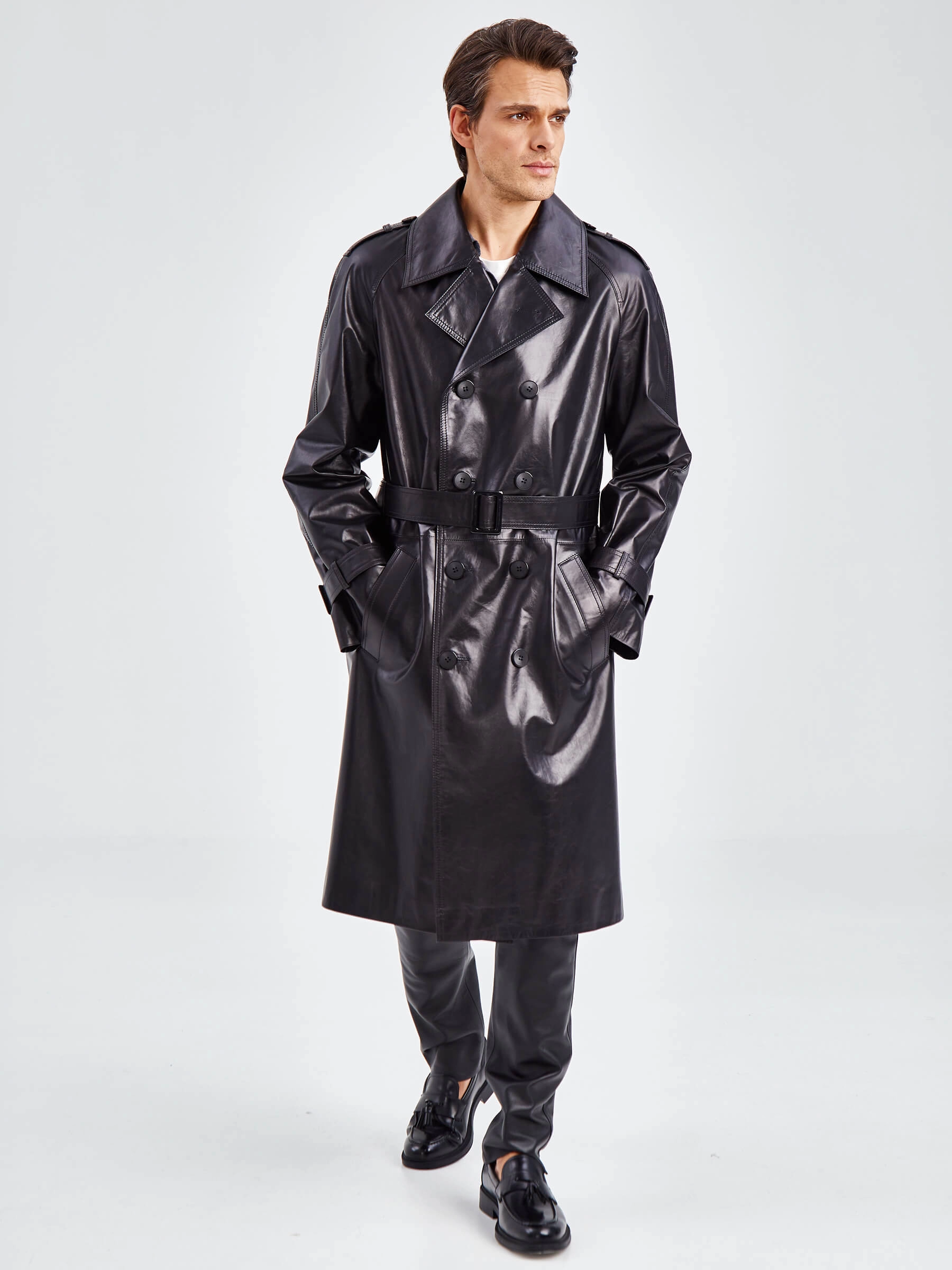 Двубортное кожаное пальто для уверенных в себе мужчин. Классический стиль. Рукав-реглан, обеспечивает комфорт в движении. Прекрасно сочетается по стилю как со свободной одеждой, так и со строгим деловым костюмом. Особенно рекомендуется мужчинам, для которых важен дресс-код.