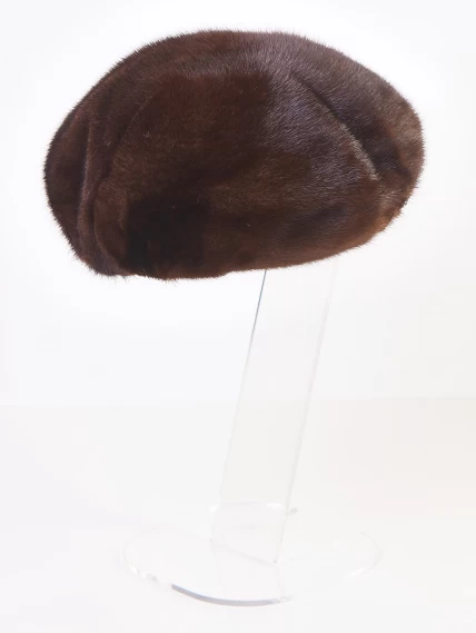 Головной убор (берет) из меха норки женский М-160, темно-коричневый, размер 58, артикул 51370