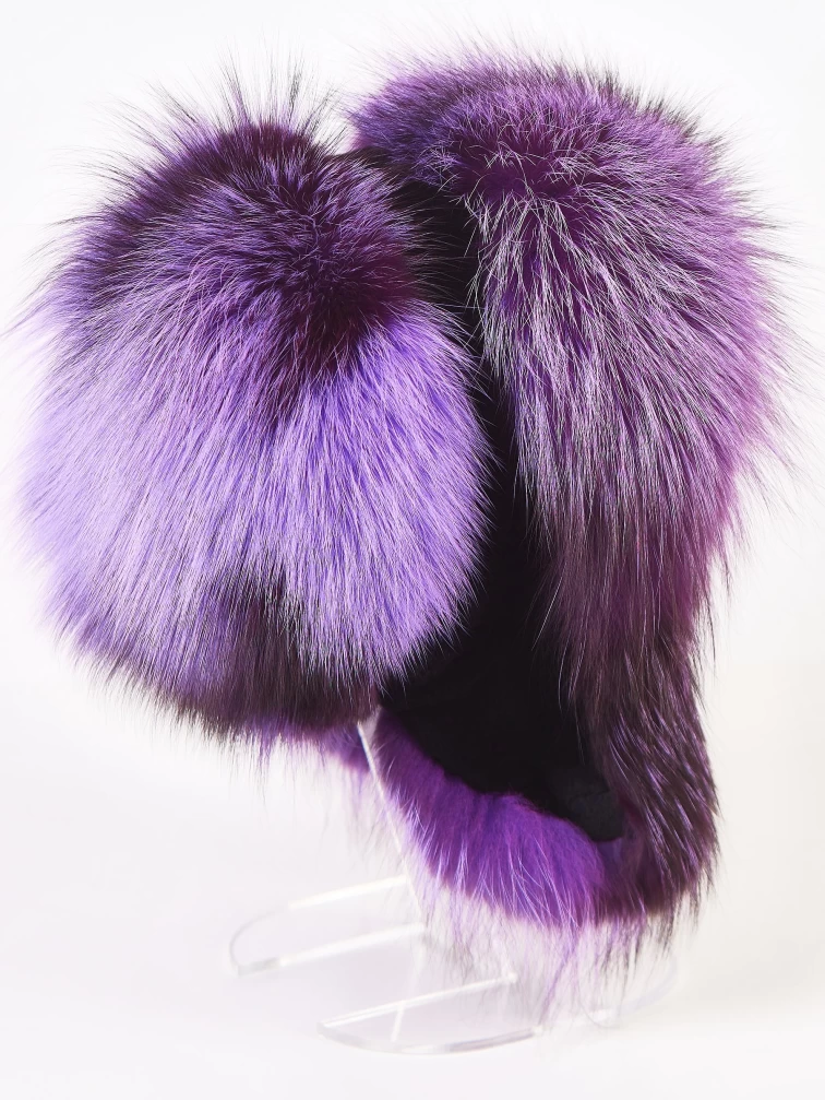 Головной убор из меха лисы женский М-221, сиреневый, размер 58, артикул 51515
