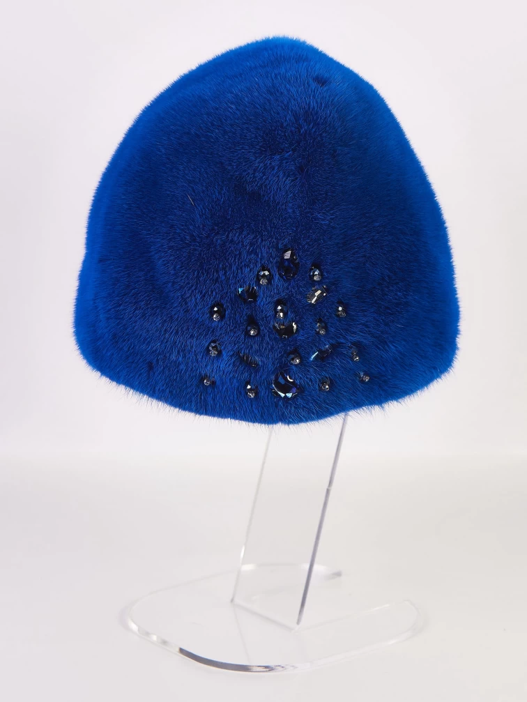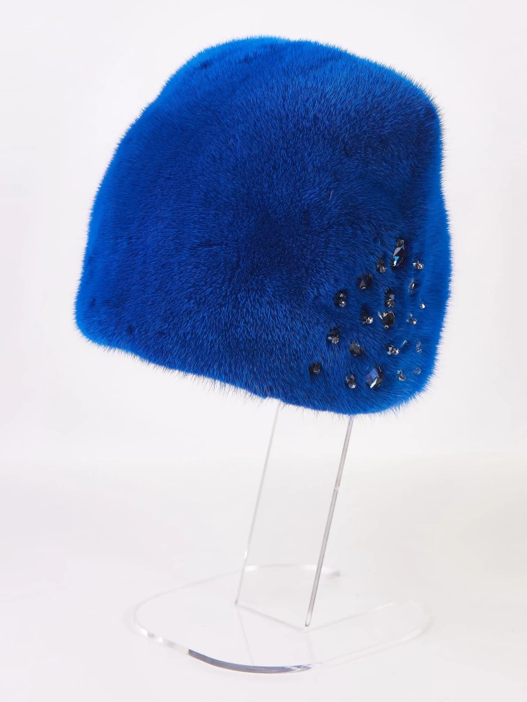 Товар головной убор из меха норки женский новинка, синий, размер 58, артикул 51535 выполнен из норка крашенной. Рассчитан на сезон: зима.