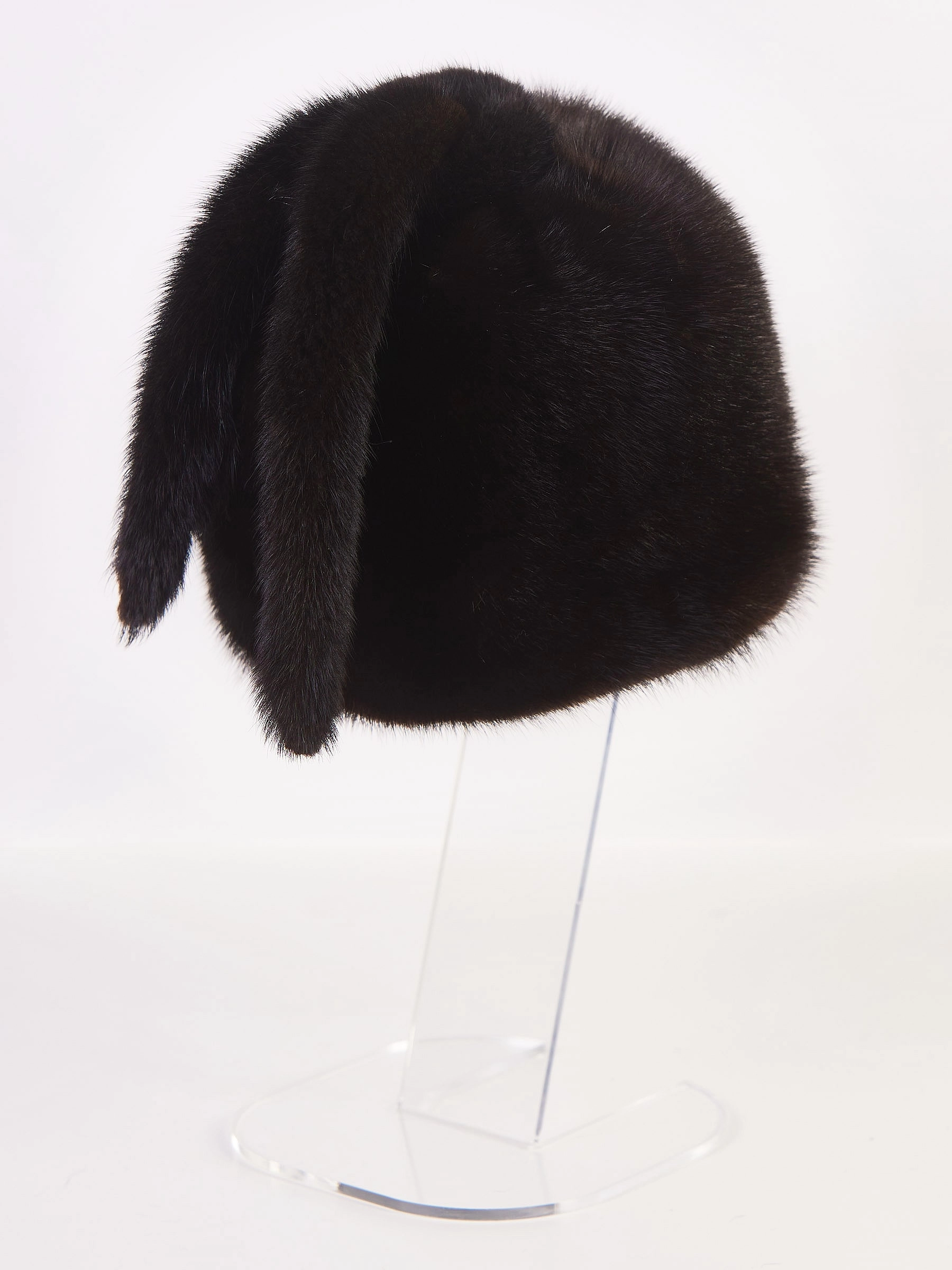 Головной убор из меха норки женский Зайчик, темно-коричневый, размер 58, артикул 51555