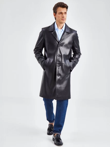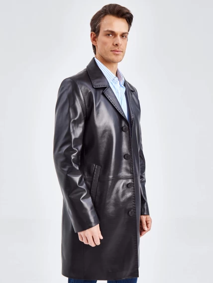 Классическое кожаное пальто мужское премиум класса 2010-11, черное, размер 52, артикул 71360