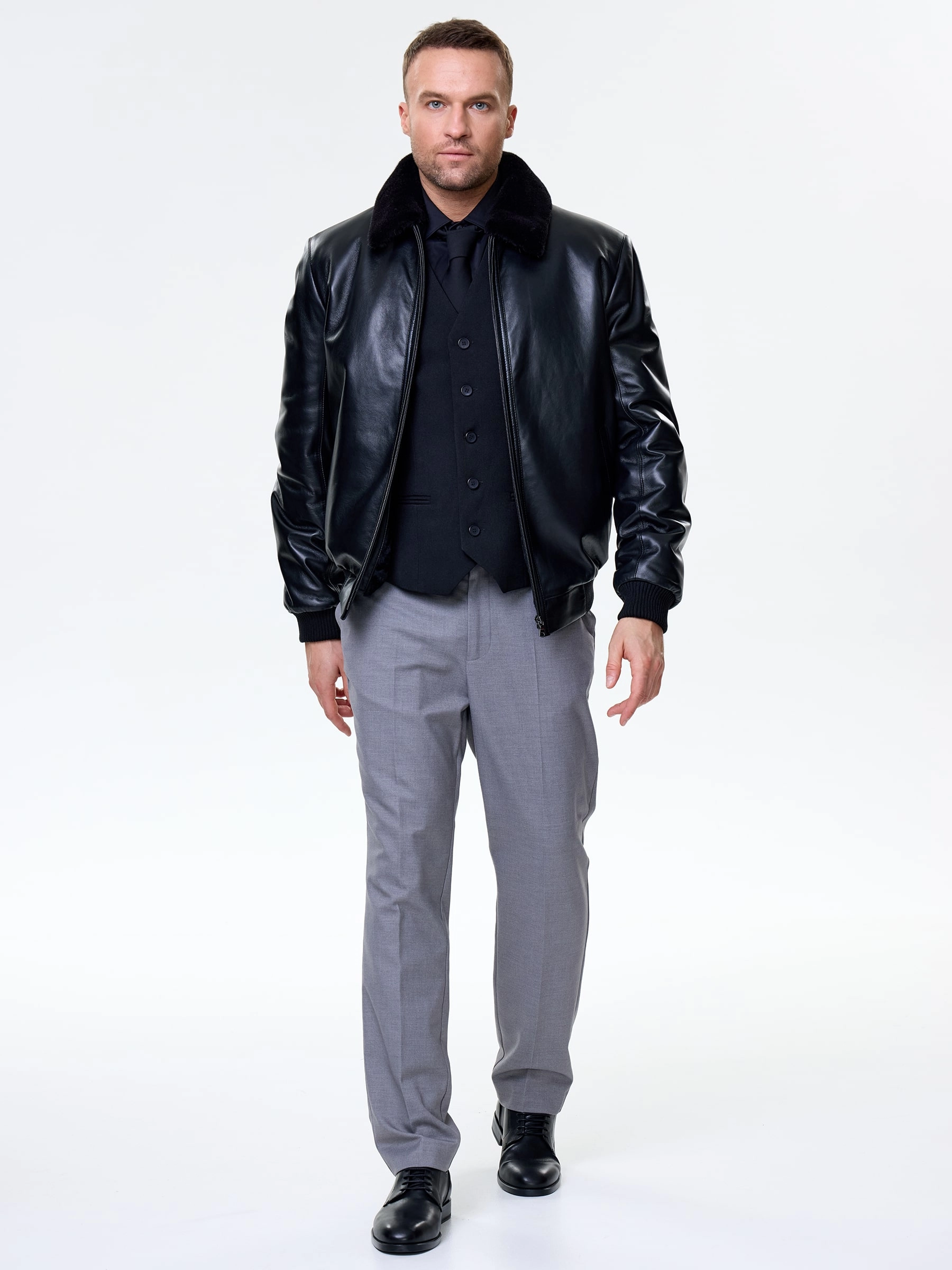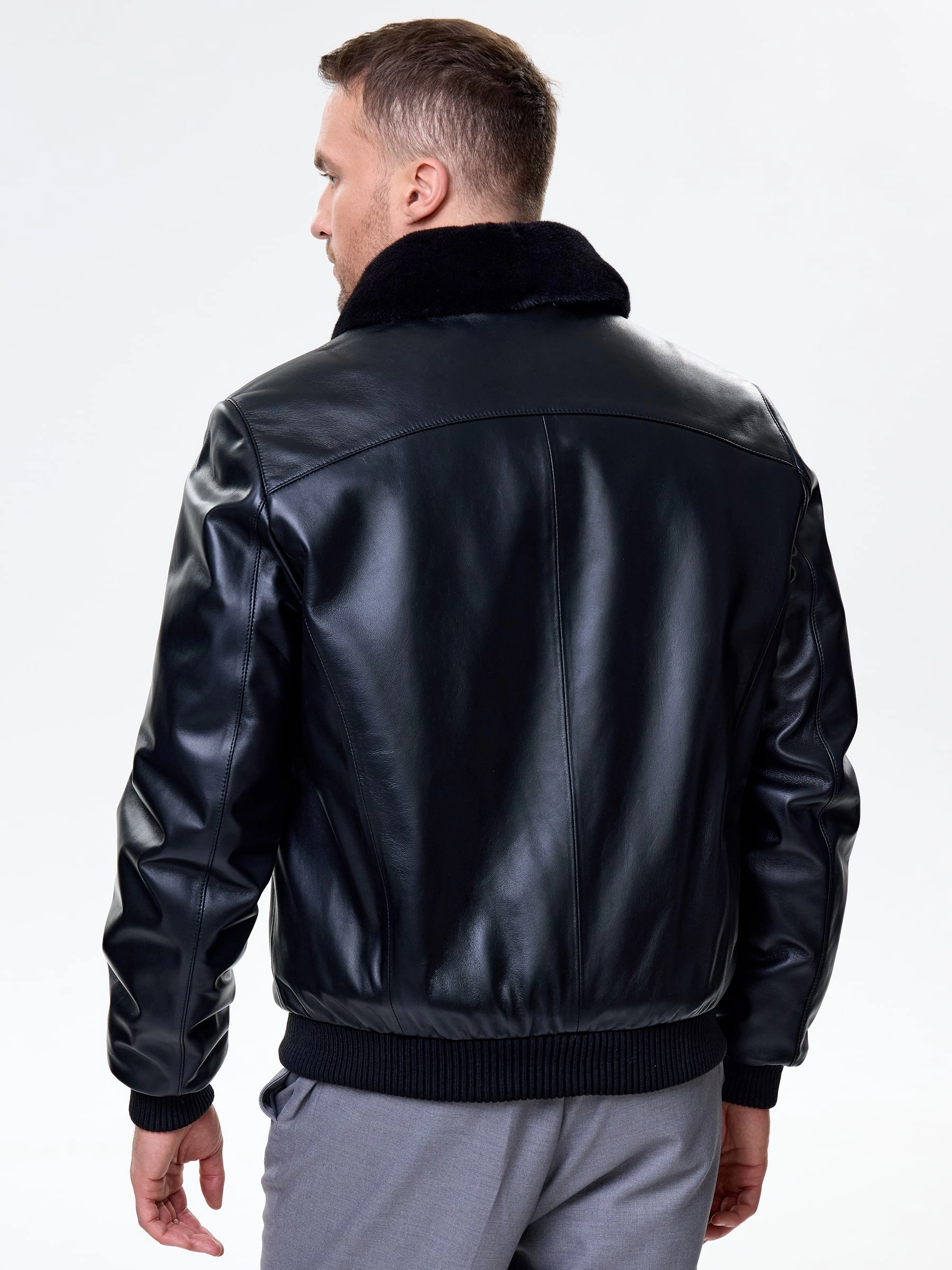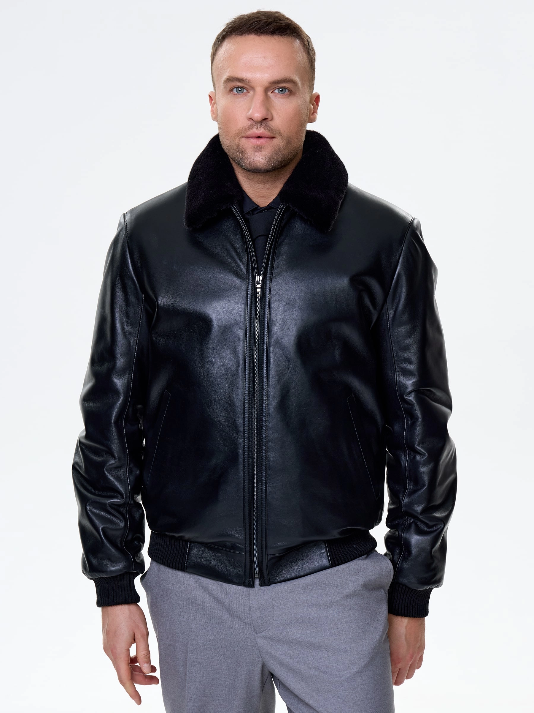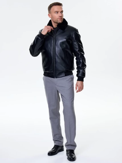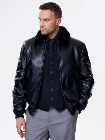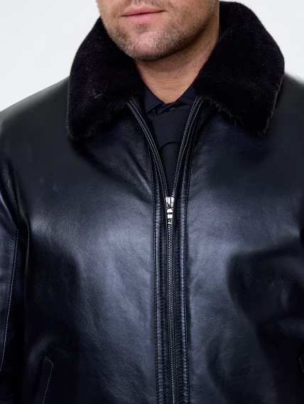 Короткая кожаная дубленка бомбер для мужчин 558мех, черная, размер 50, артикул 71530