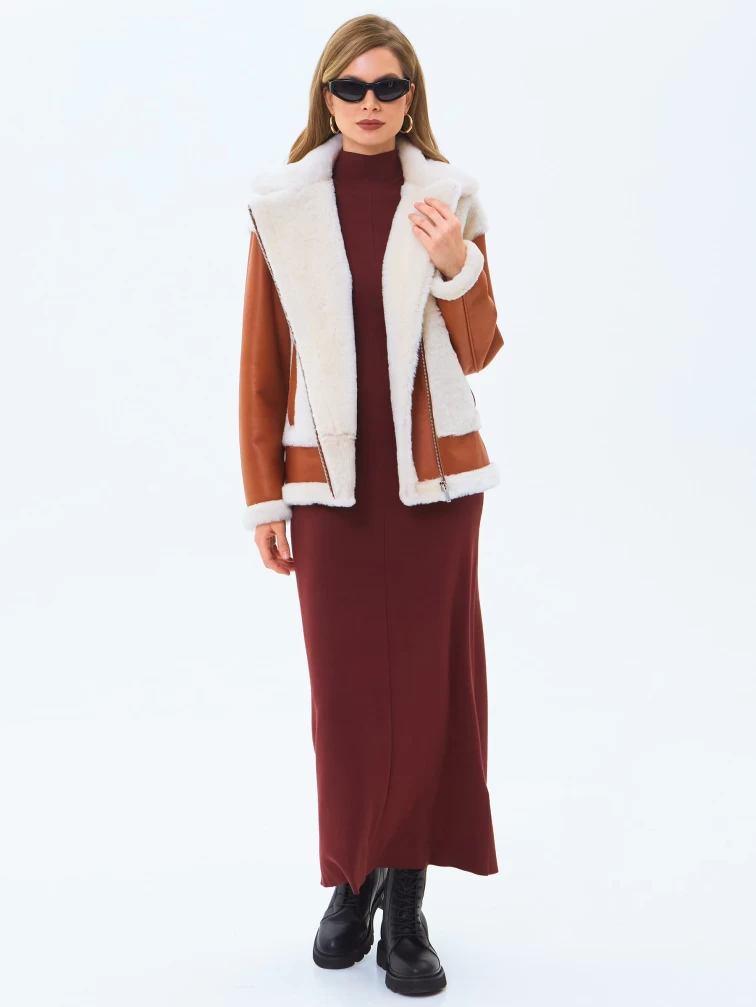 Короткая женская дубленка из натуральной овчины премиум класса 2066, виски, размер 44, артикул 64710