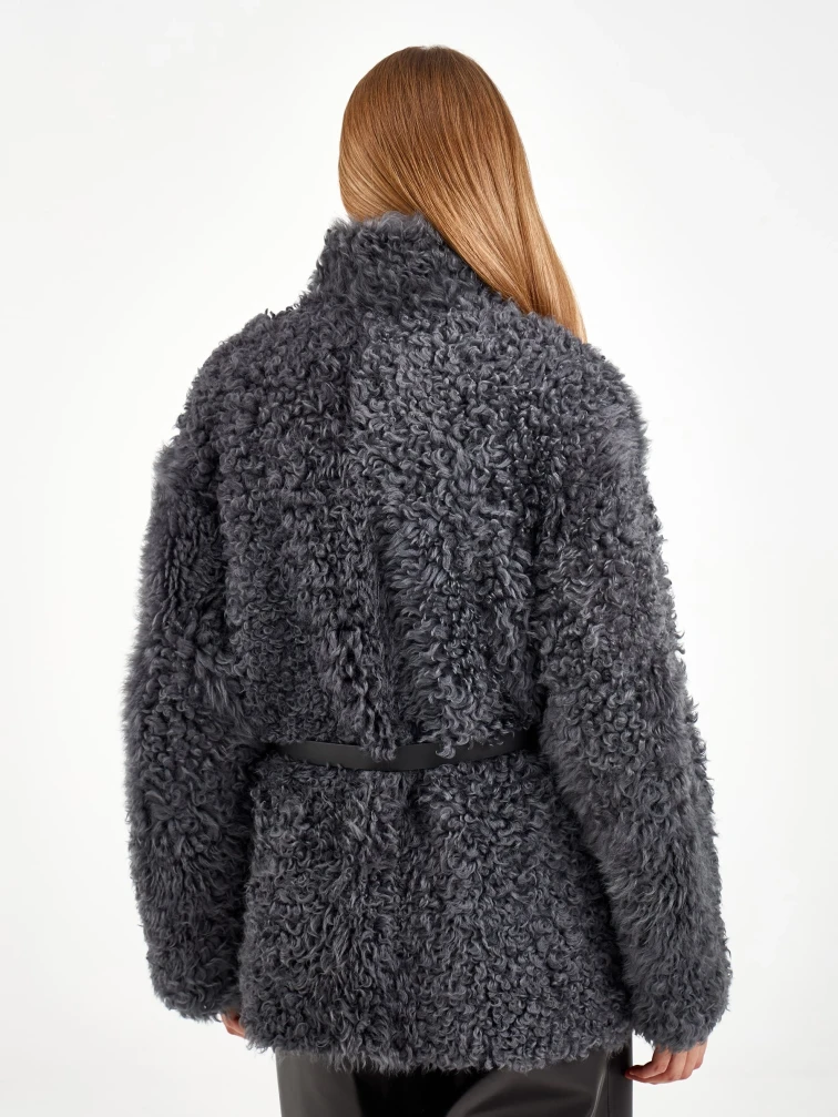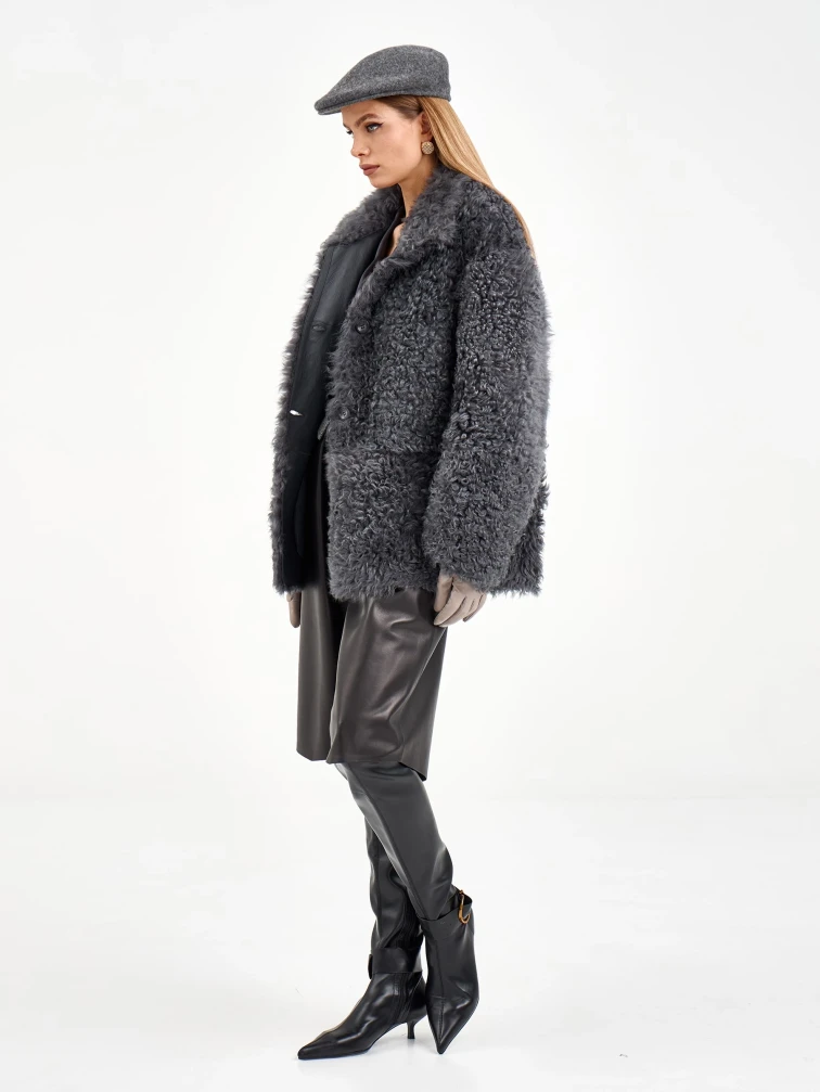 Короткая дубленка из натуральной овчины «Тиградо» с выразительной текстурой крупного завитка. Эта модель не для скромных! Свободный силуэт, спущенный рукав и воротник-стойка создают образ с характером. Совет стилиста: наденьте с кожаными брюками и грубыми ботинками для уличного шика или с однотонным платьем и сапогами-челси для контраста фактур.
