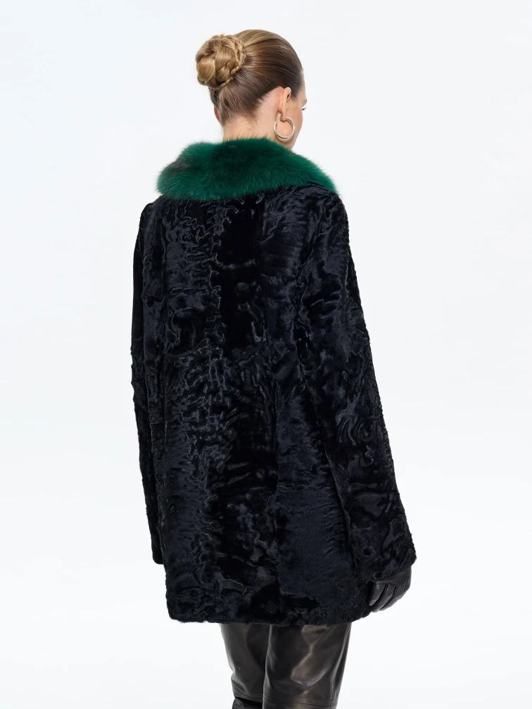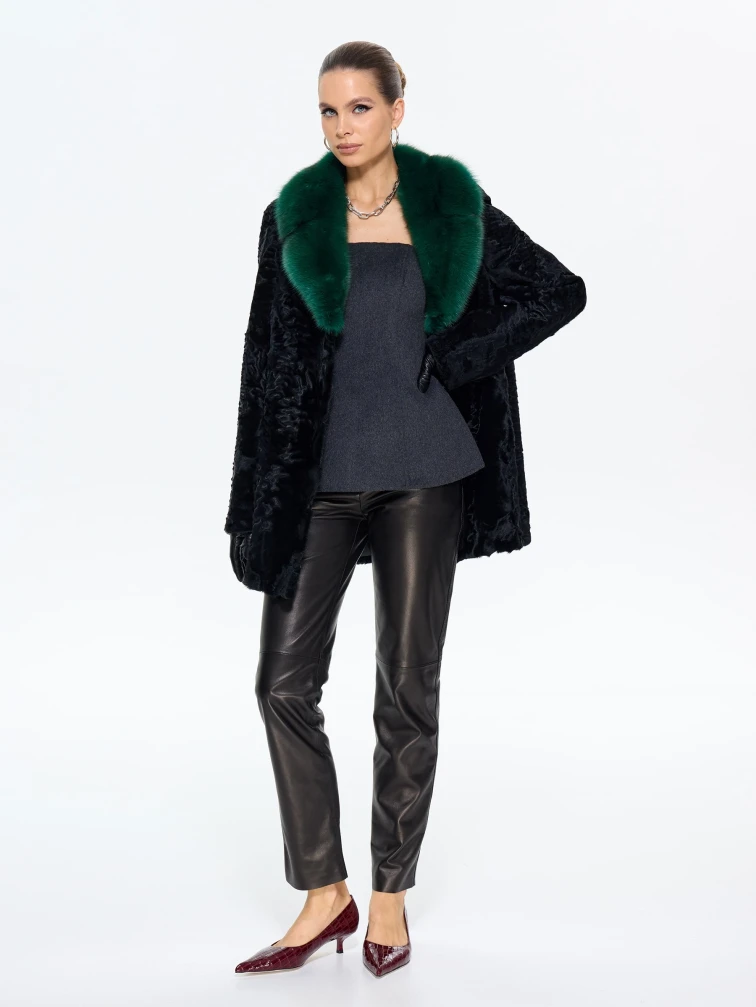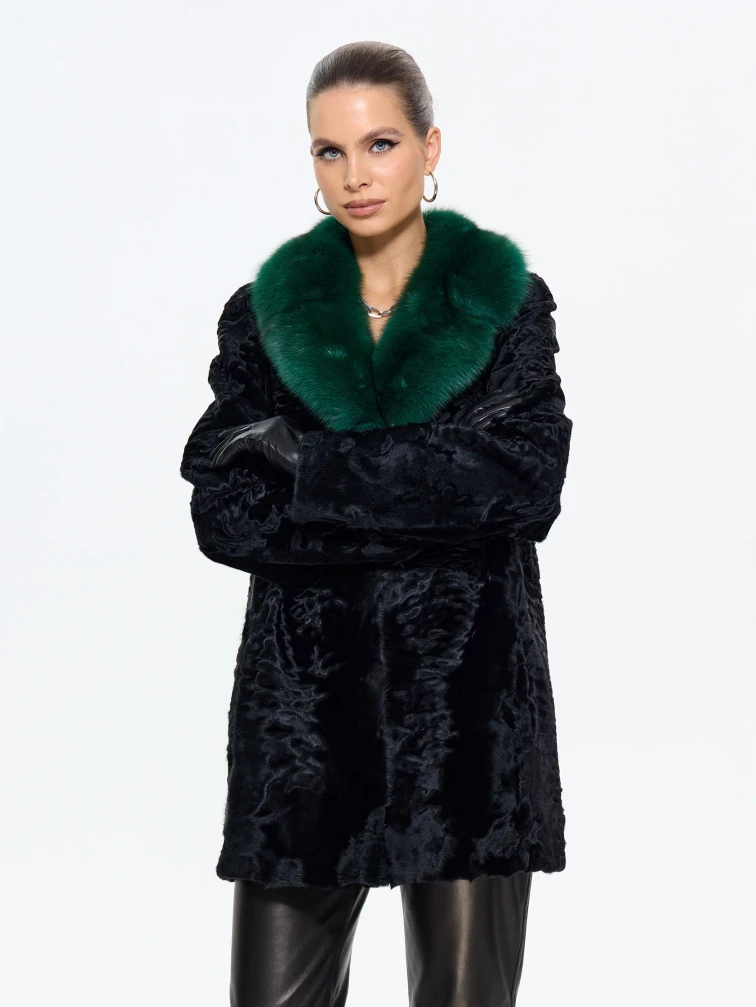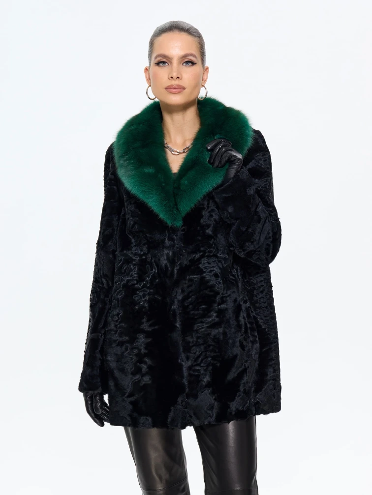 Короткая женская шуба из меха каракульчи Ирэн, черная, размер 48, артикул 65550