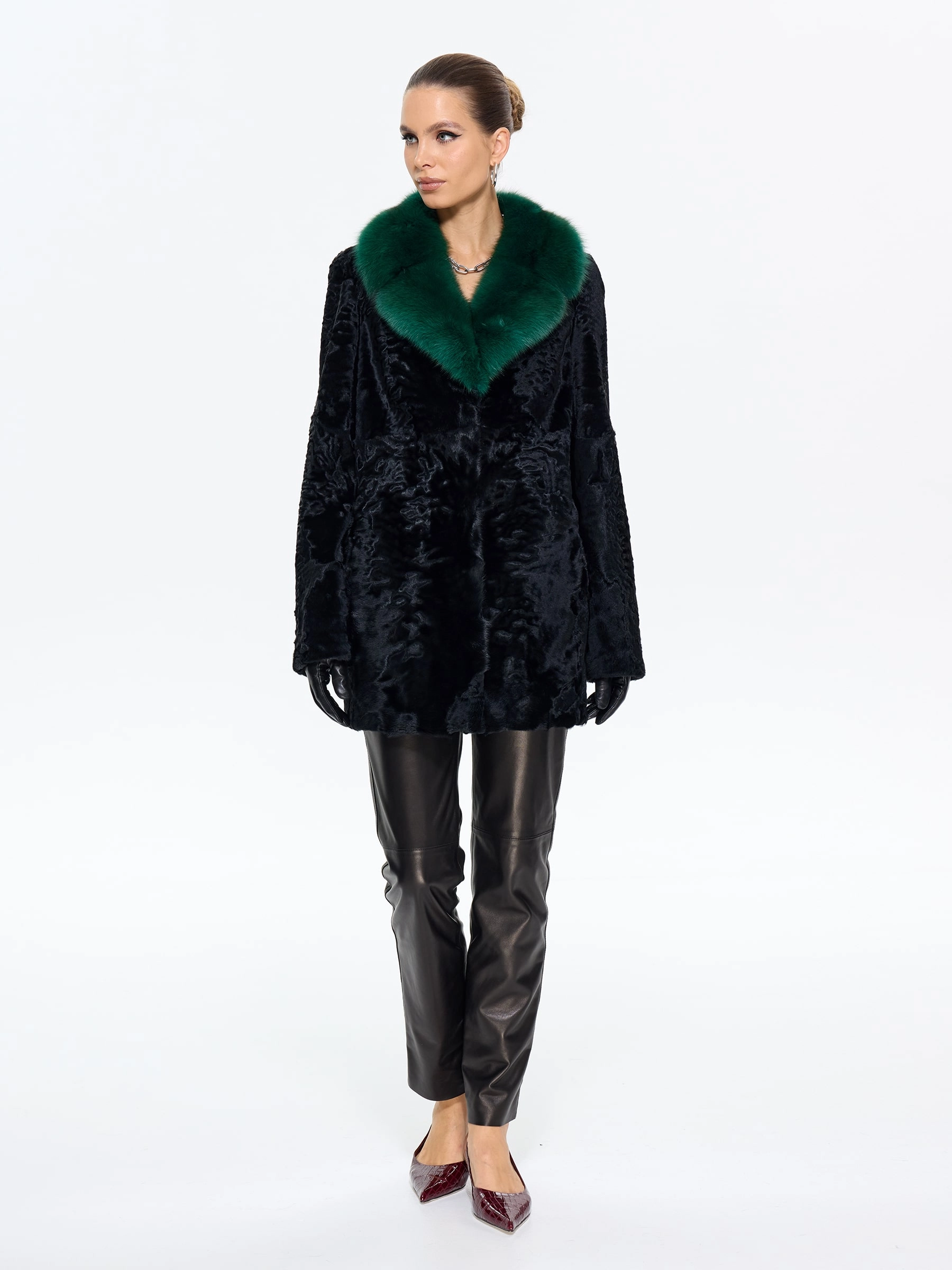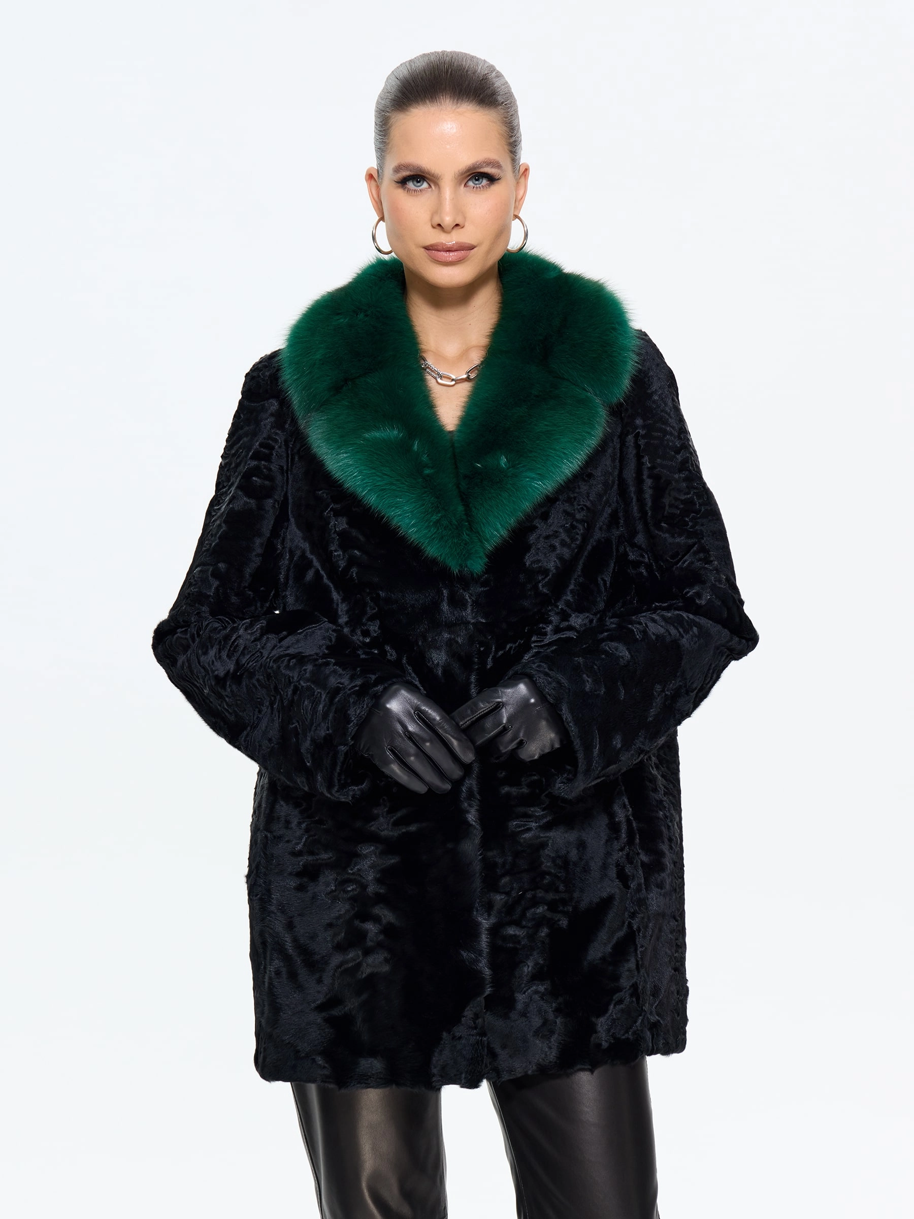 Шуба из меха каракульчи премиум-класса с элегантным английским воротником. Классический прямой силуэт длиной 80 см подчеркивает стройность и воплощает утонченный шарм. Модель с втачными рукавами и застежкой-клипсами легко дополняется аксессуарами. Стилисты рекомендуют носить эту шубу с кожаными перчатками, объемной сумкой и сапогами-челси для повседневного образа или с платьем-футляром и жемчугом для вечернего выхода. Это идеальный вариант для ценительниц вечной классики и безупречного стиля.
