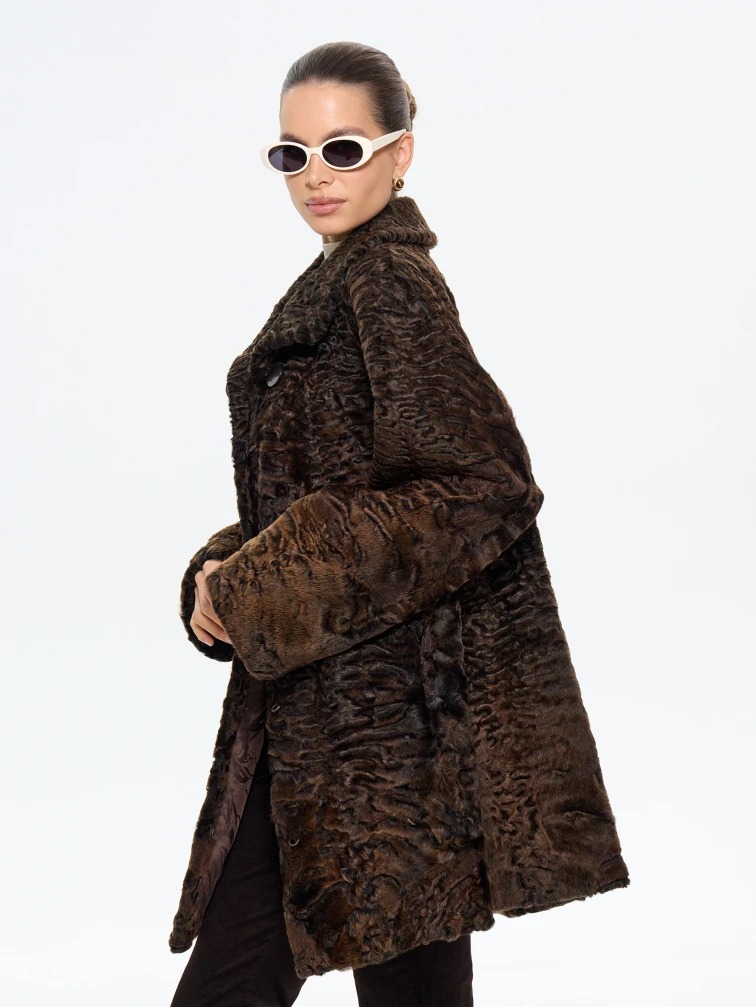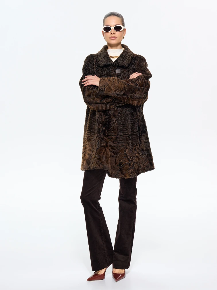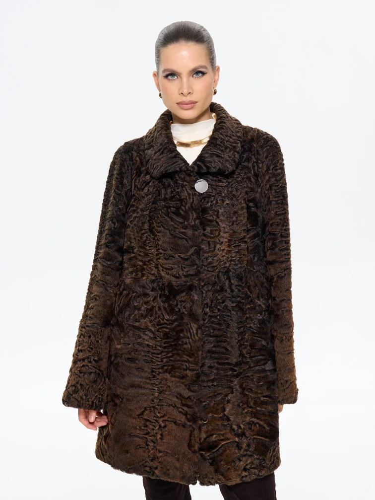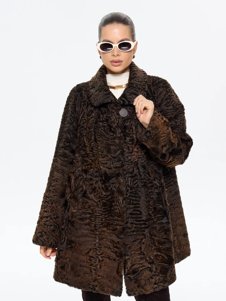 Короткая женская шуба из меха каракульчи Лиза, коричневая, размер 60, артикул 65570