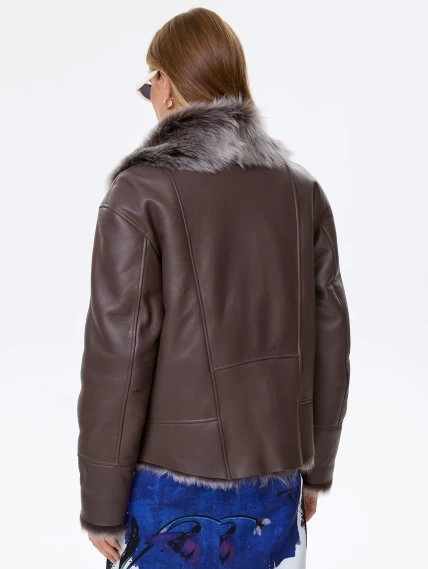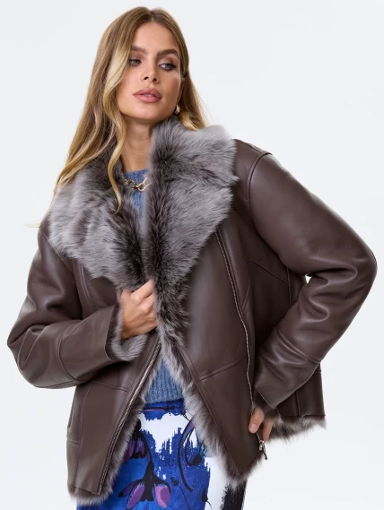 Короткое женское полупальто из натуральной овчины тоскана премиум класса 2049, коричневое, размер 48, артикул 64420