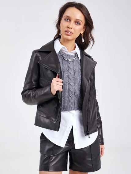 Товар короткая женская кожаная куртка косуха премиум класса 3032, черная, размер 44, артикул 23240 выполнен из натуральной кожи с застежкой молния. Рассчитан на сезон: весна-лето. Длина изделия 55 см, силуэт прямой.