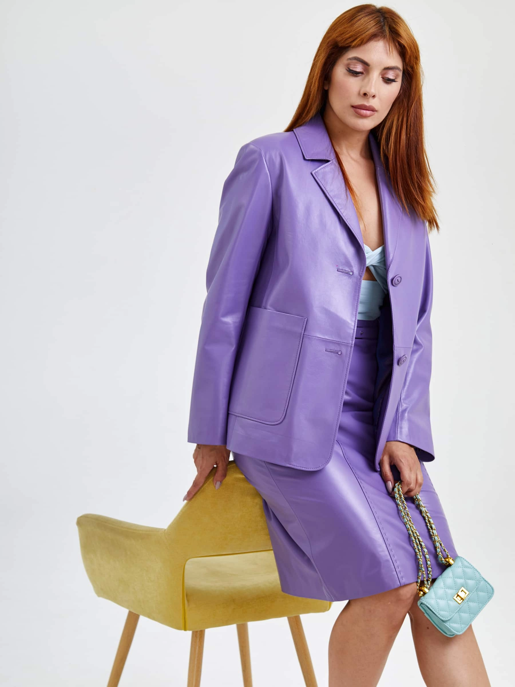 Товар кожаная юбка карандаш 02рс, сиреневая, размер 46, артикул 85600 выполнен из натуральной кожи с застежкой молния. Рассчитан на сезон: демисезон. Длина изделия 64 см, силуэт прямой.