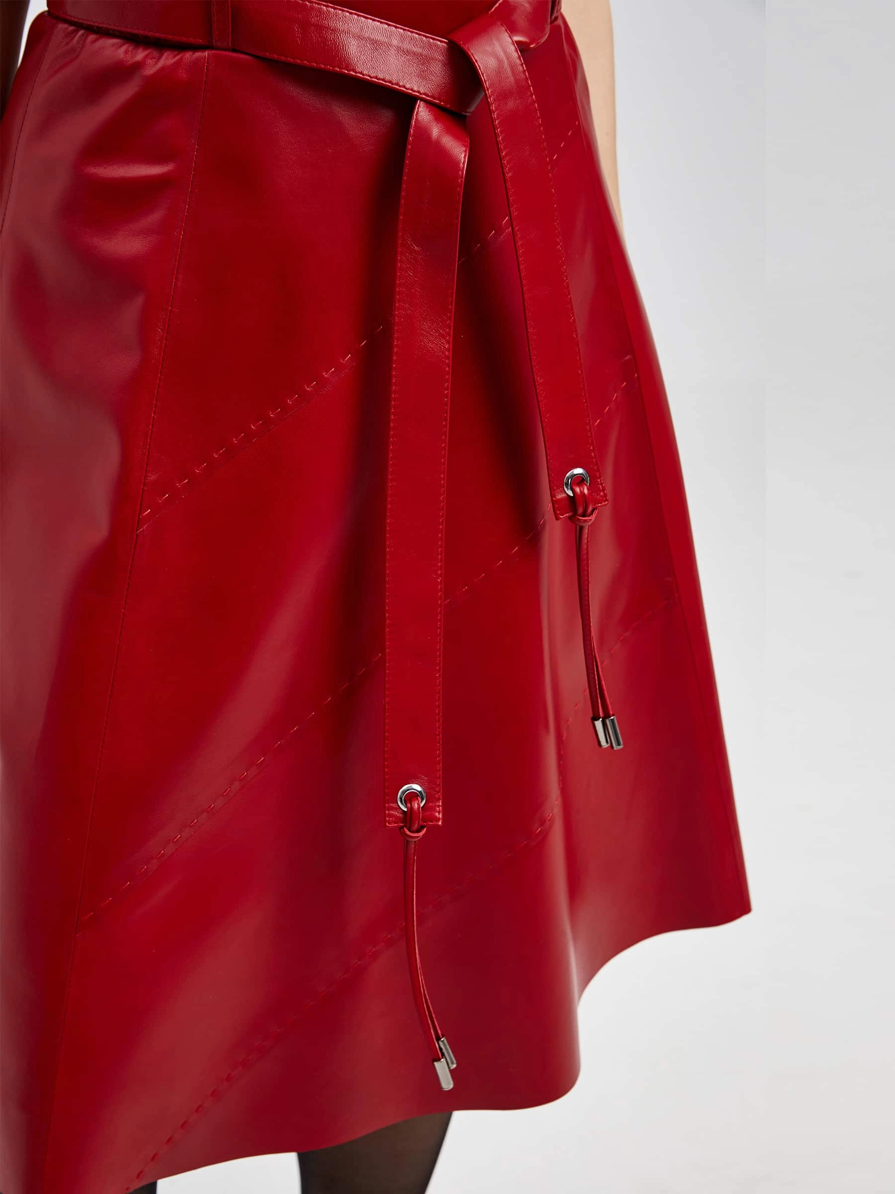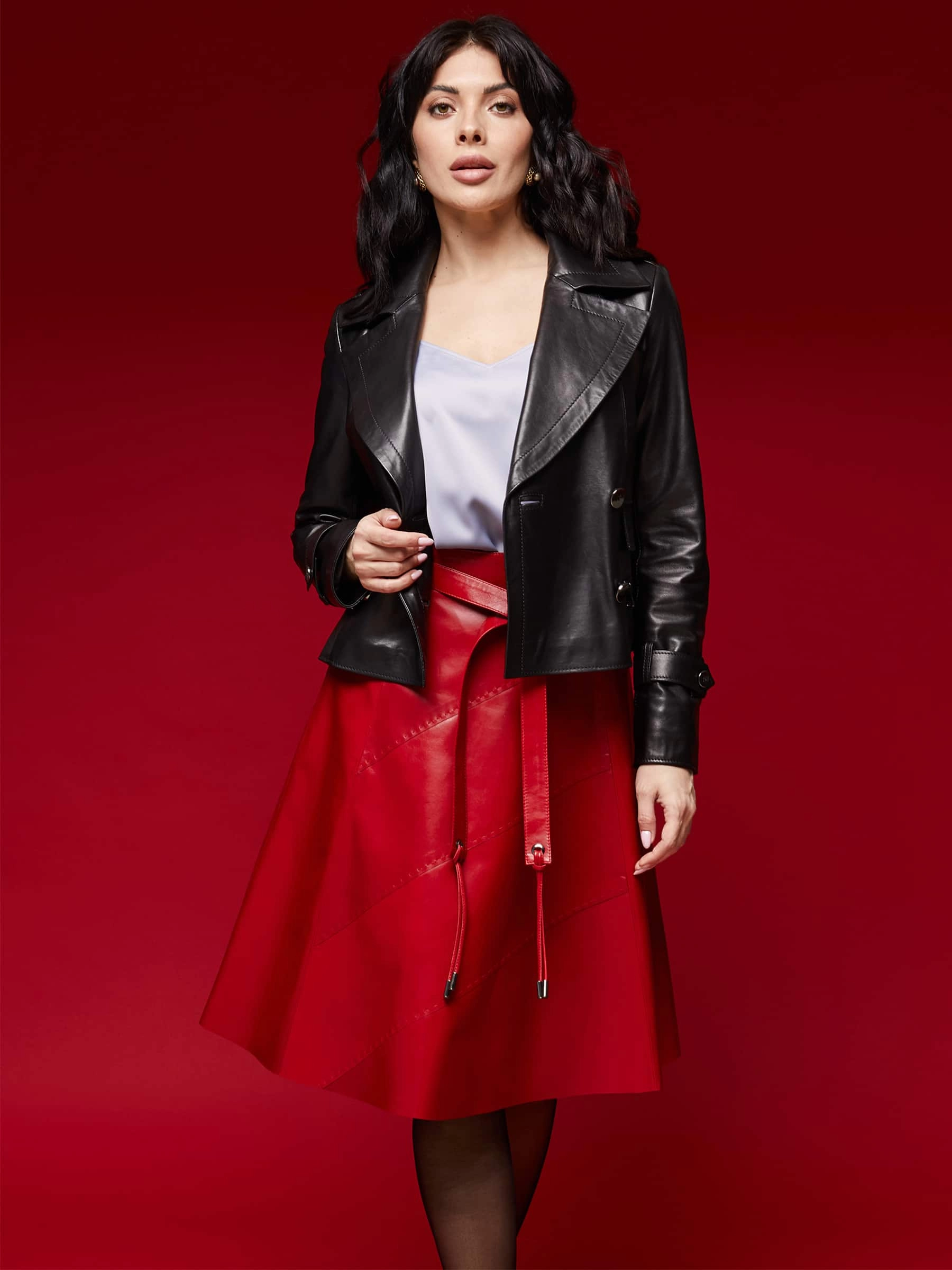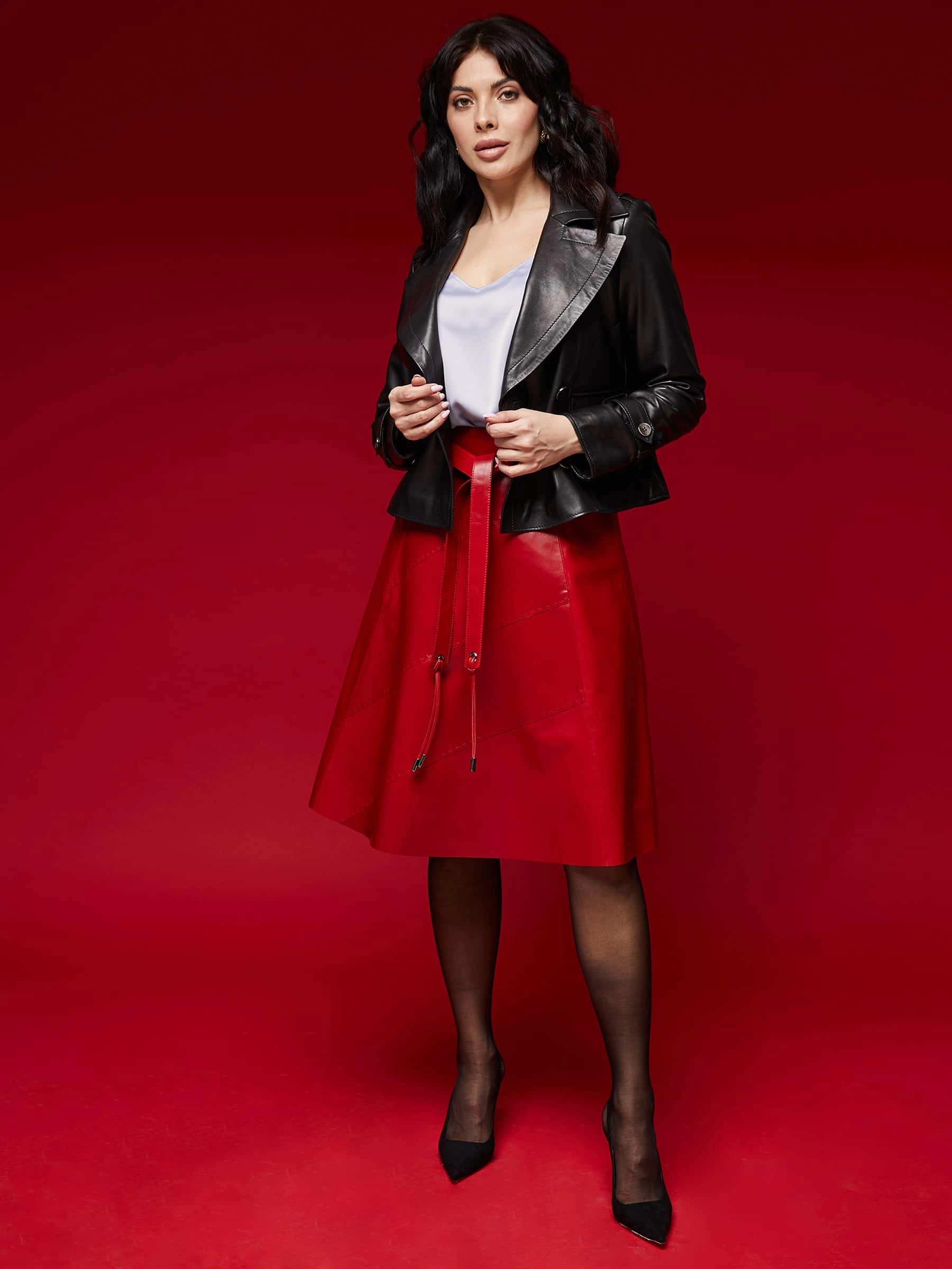 Товар кожаная расклешенная юбка из натуральной кожи 01рс, красная, размер 52, артикул 85140 выполнен из натуральной кожи с застежкой молния. Рассчитан на сезон: демисезон. Длина изделия 70 см, силуэт расклешенный.