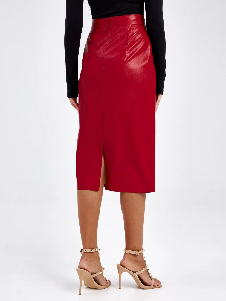 Товар женские кожаная юбка из экокожи 4540009, красная, размер 44, артикул 85740 выполнен из экокожи с застежкой молния. Рассчитан на сезон: демисезон. Длина изделия миди, силуэт прямой.