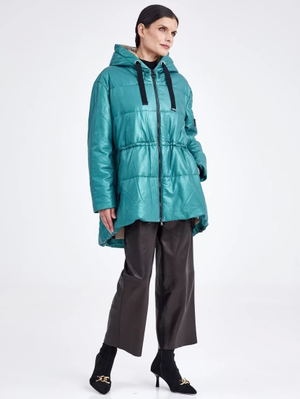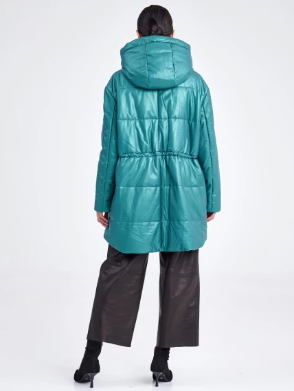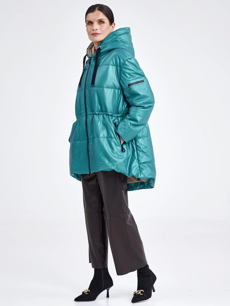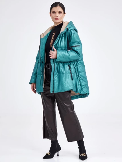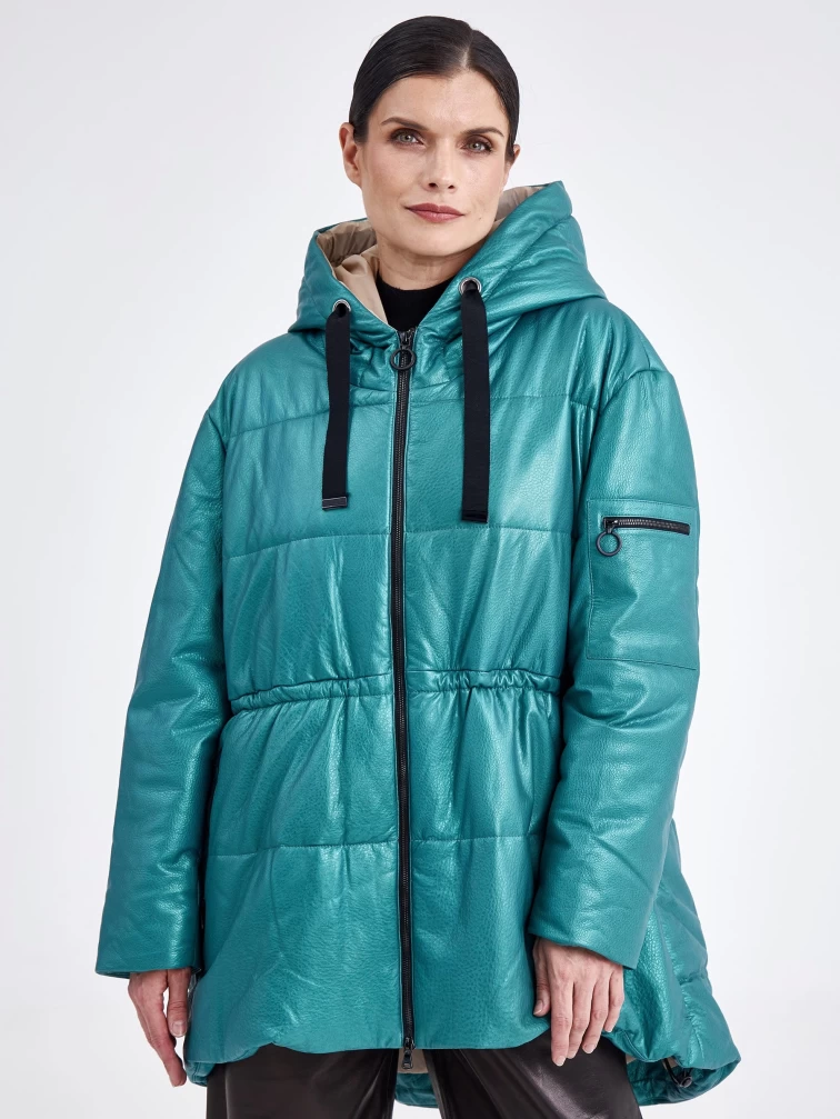 Кожаная женская куртка оверсайз с капюшоном премиум класса 3021, зеленая, размер 48, артикул 25470