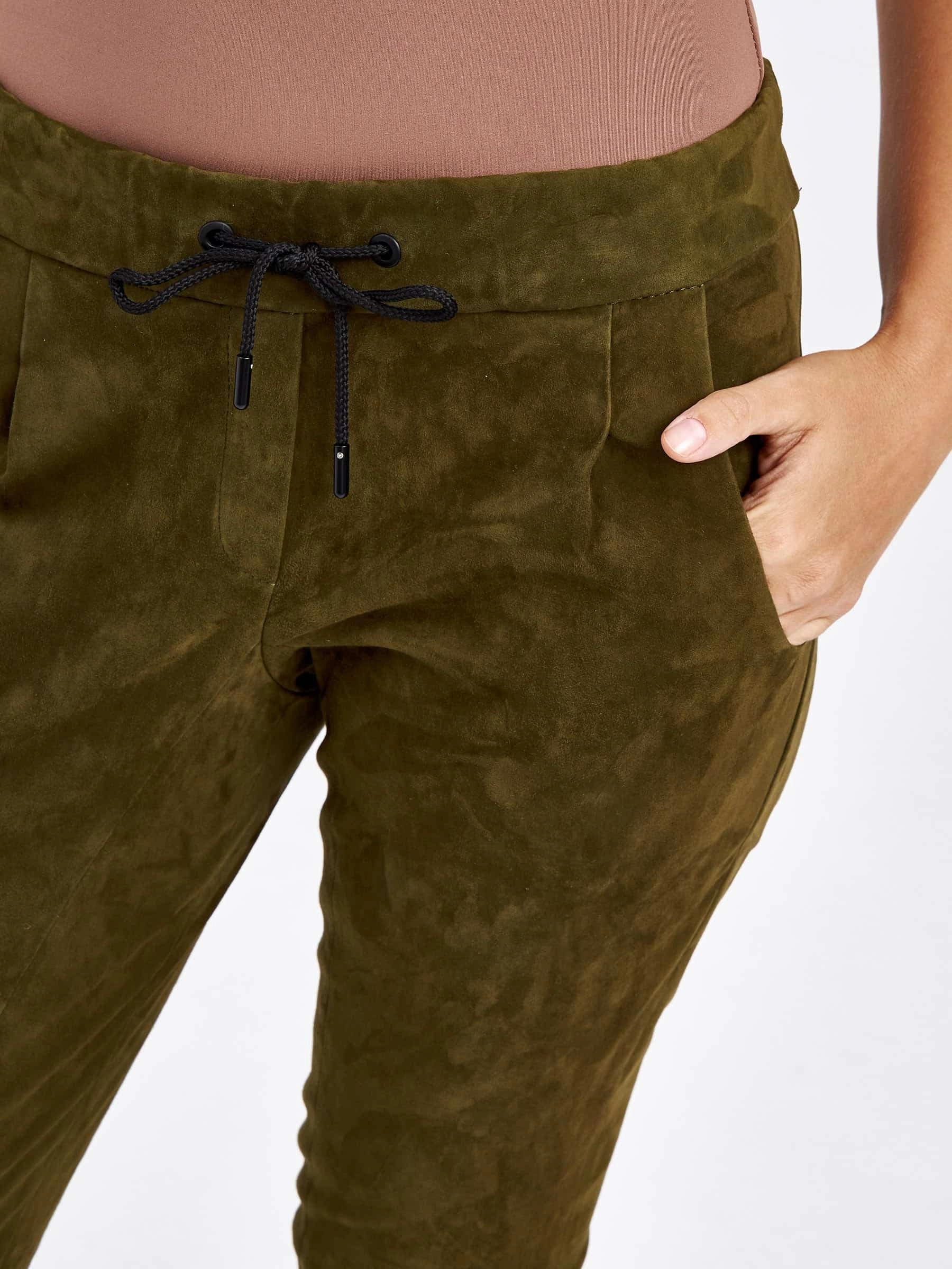 Кожаные женские брюки из натуральной замши 07_1, зеленые, размер 44, артикул 85620