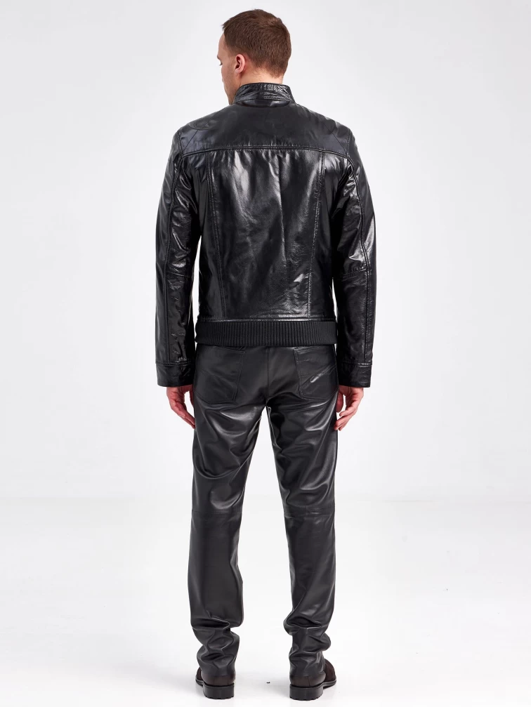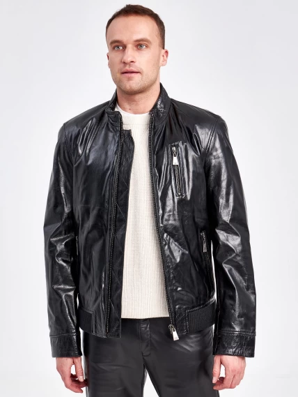 Кожаный бомбер мужской 4395, черный, размер 46, артикул 23090