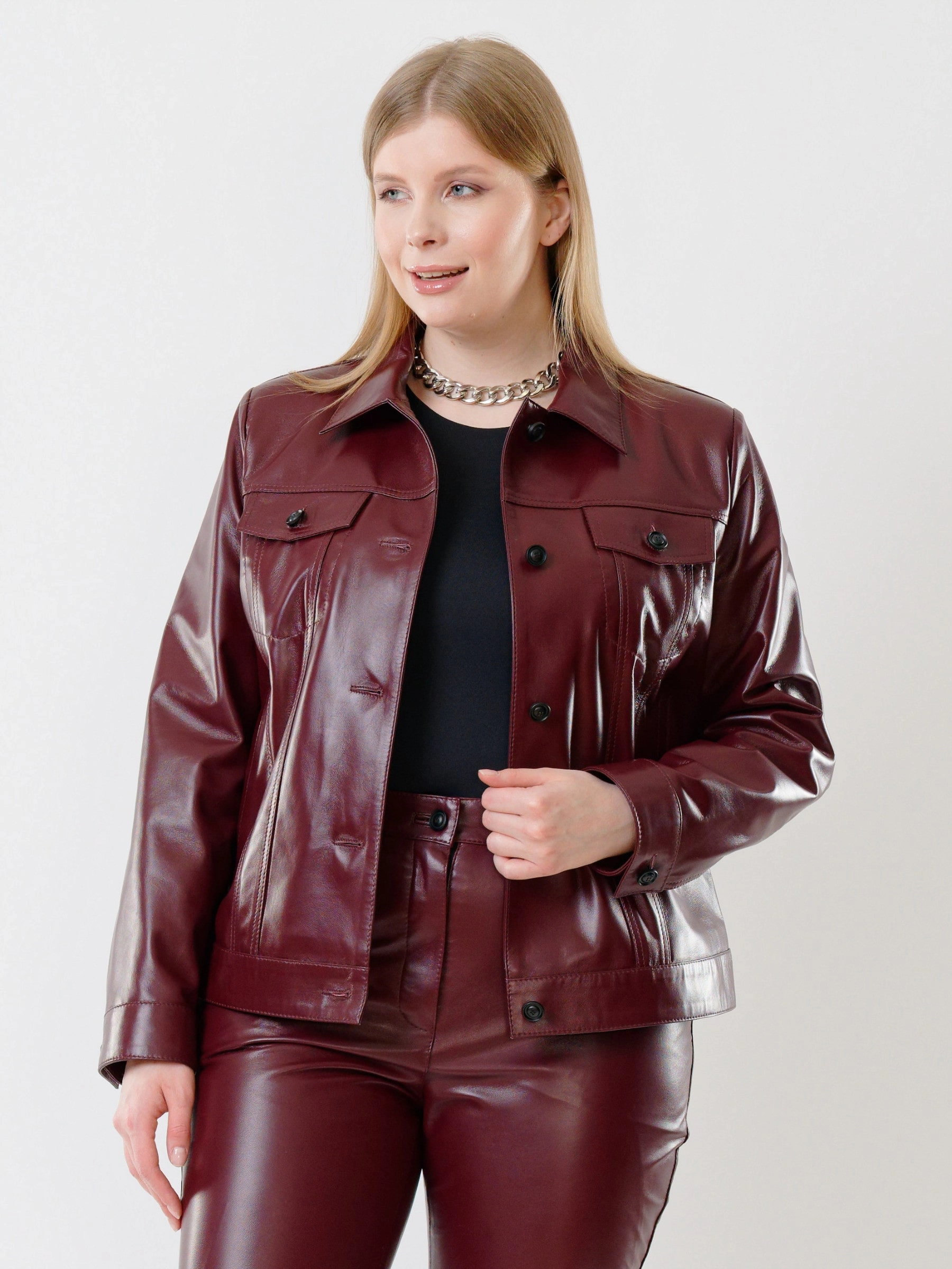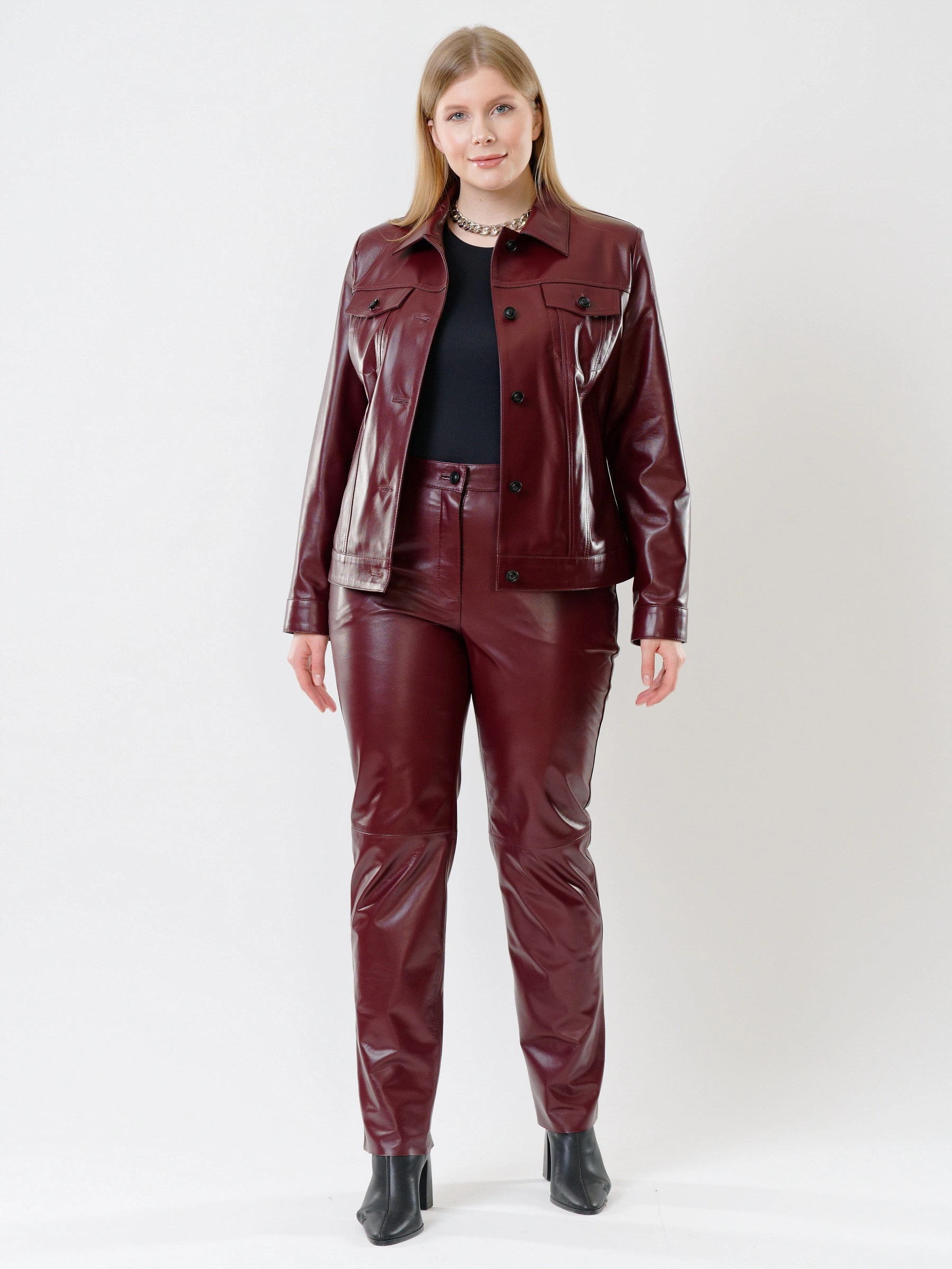 Кожаный комплект женский: Куртка 3008 + Брюки 02, бордовый, р. 48, арт. 111223