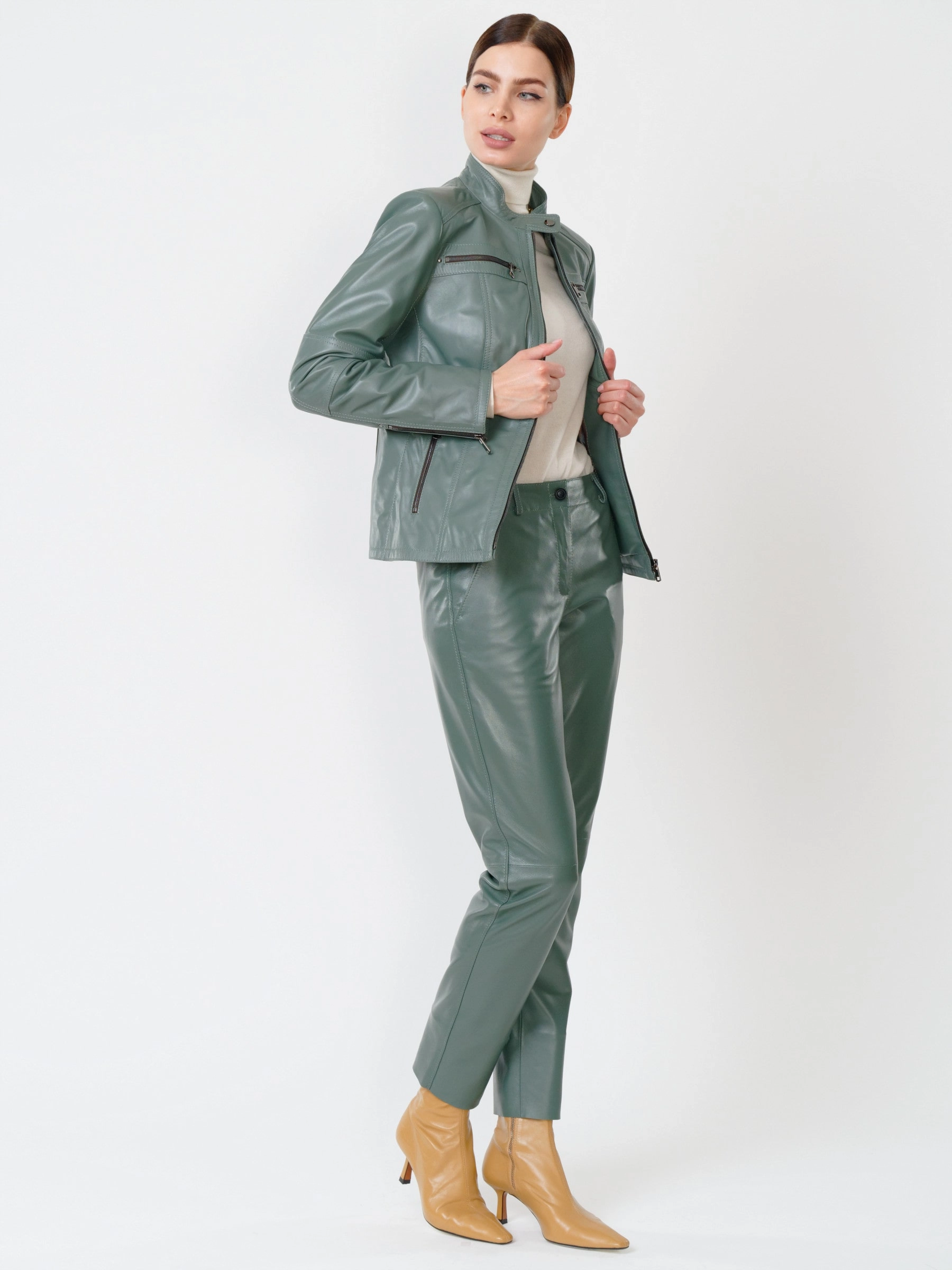 Кожаный комплект женский: Куртка 301 + Брюки 03, оливковый, р. 44, арт. 111166