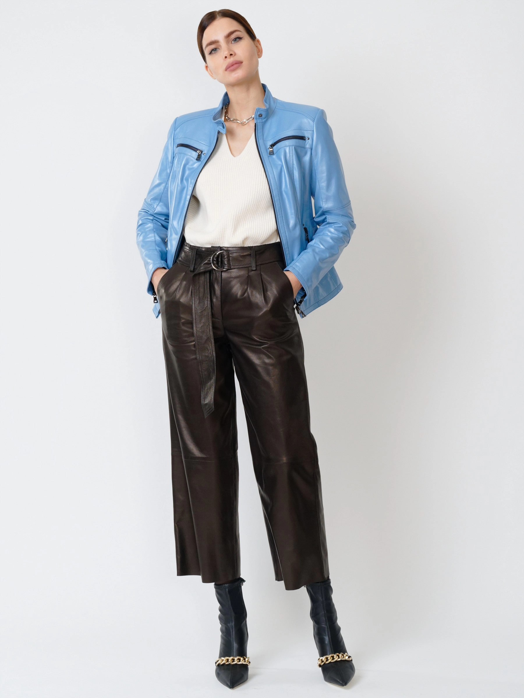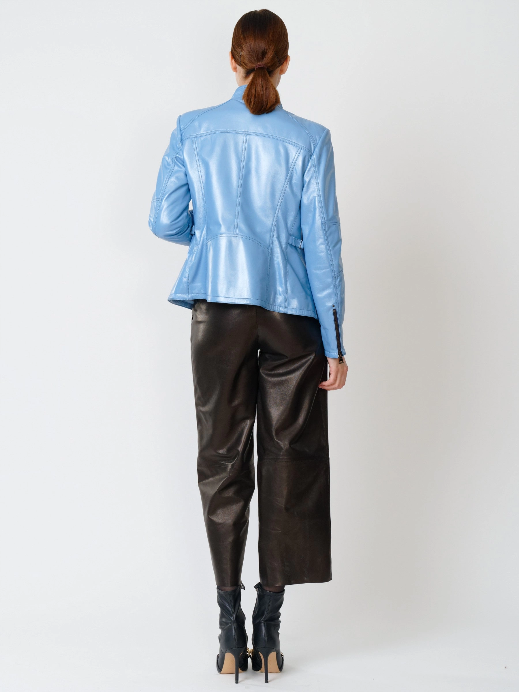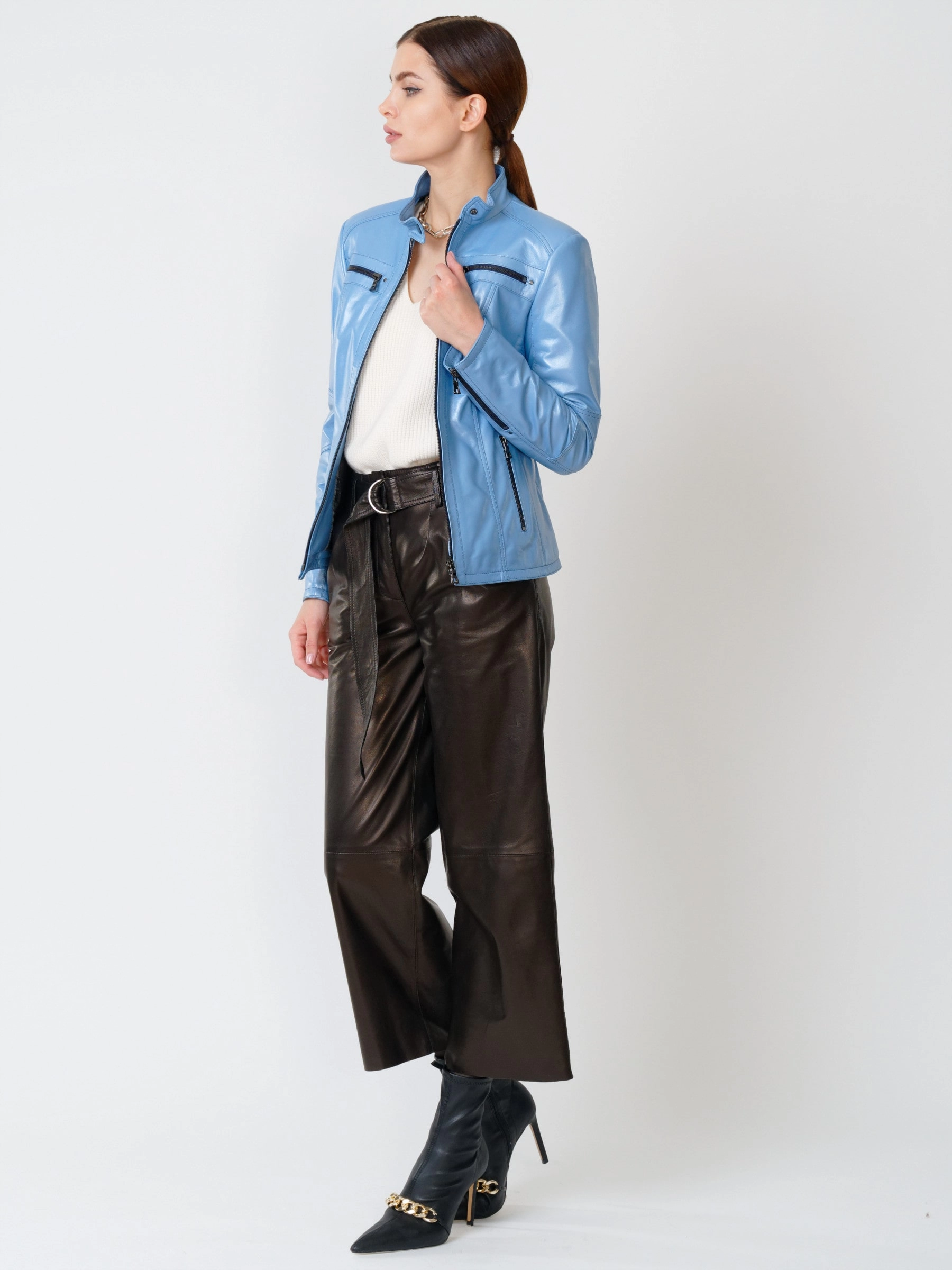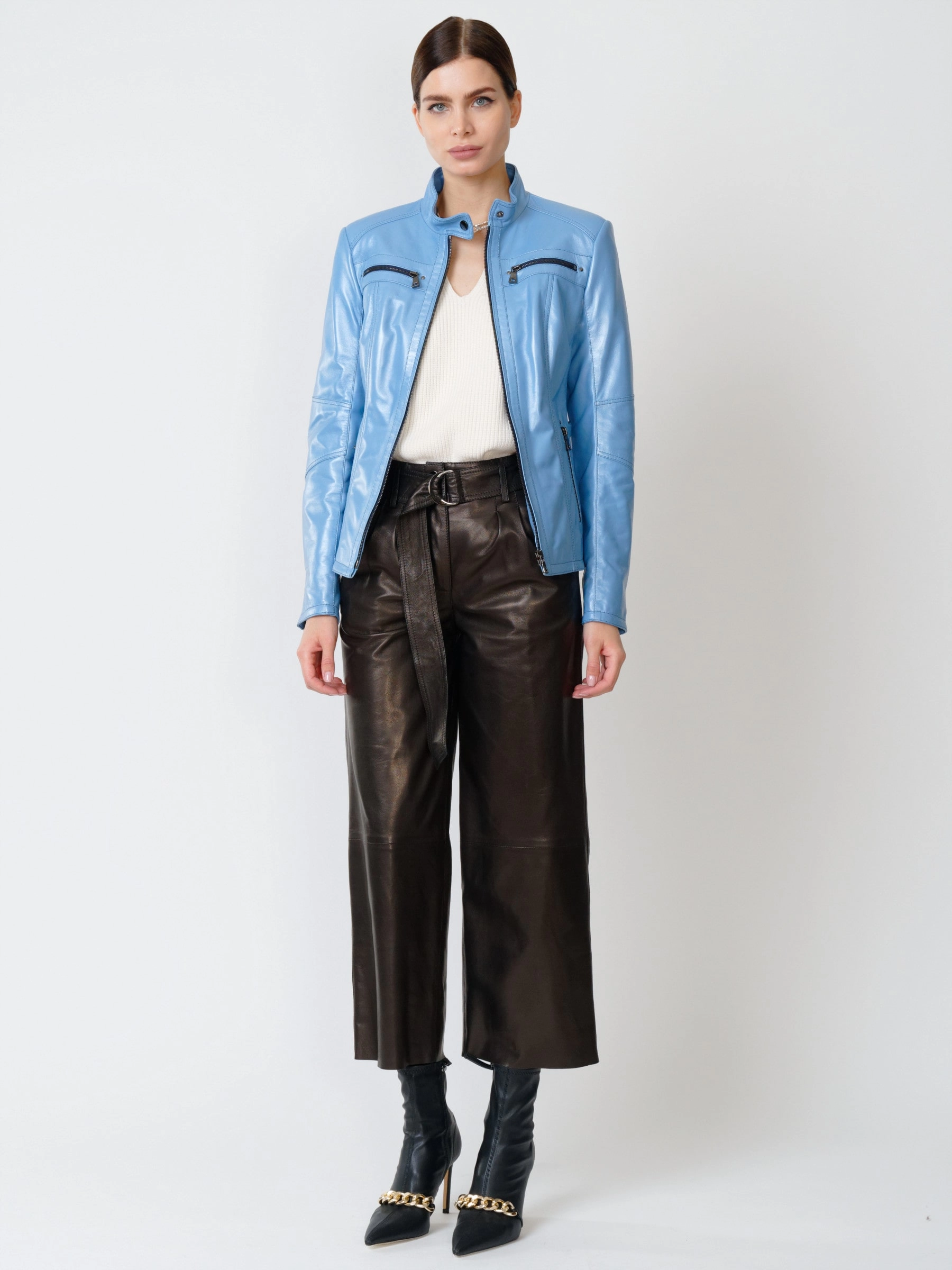 Кожаный комплект женский: Куртка 301 + Брюки 05, голубой перламутр/черный, р. 44, арт. 111167