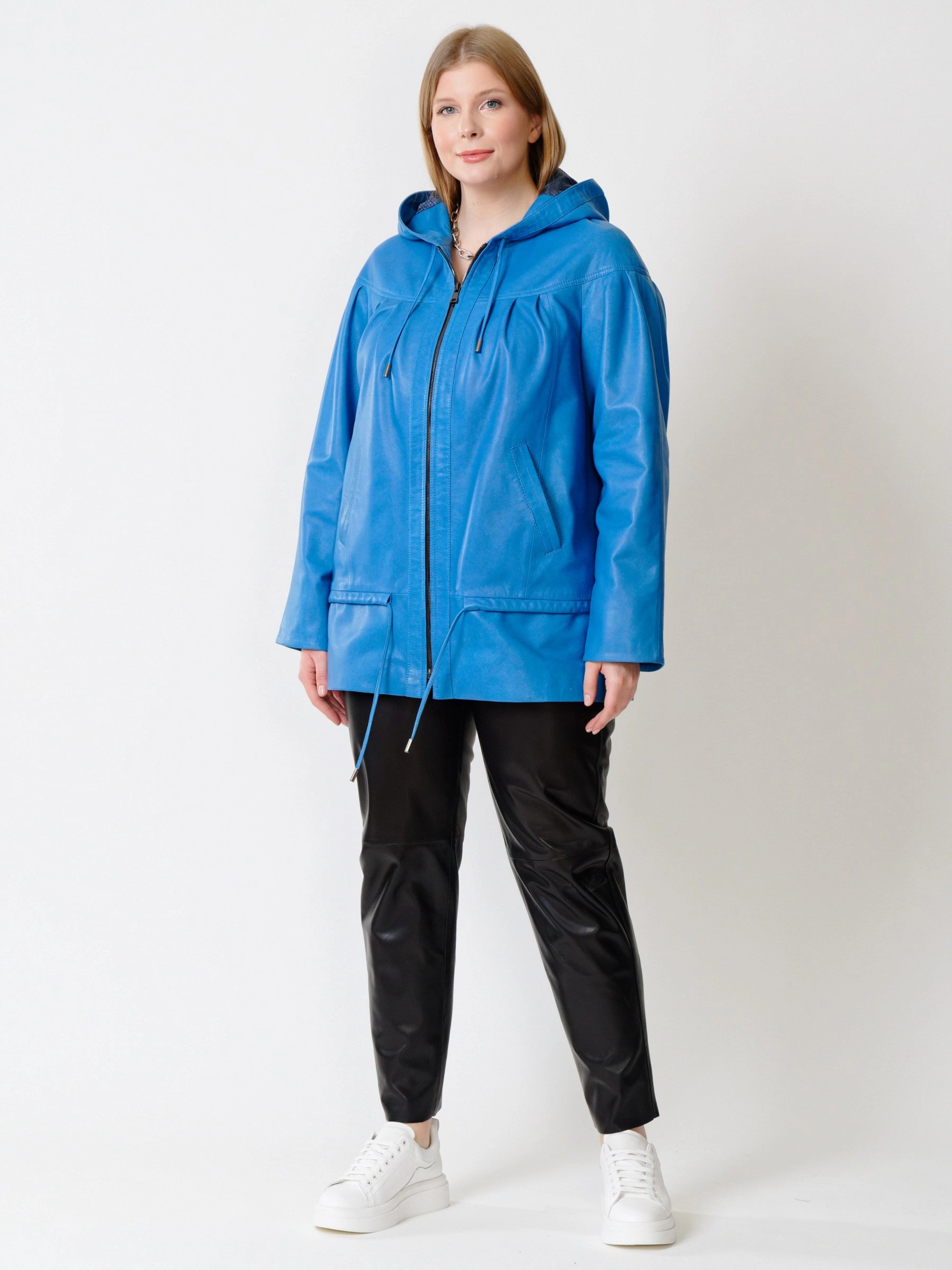 Товар кожаный комплект женский: куртка 303у + брюки 04, голубой/черный, р. 48, арт. 111201.