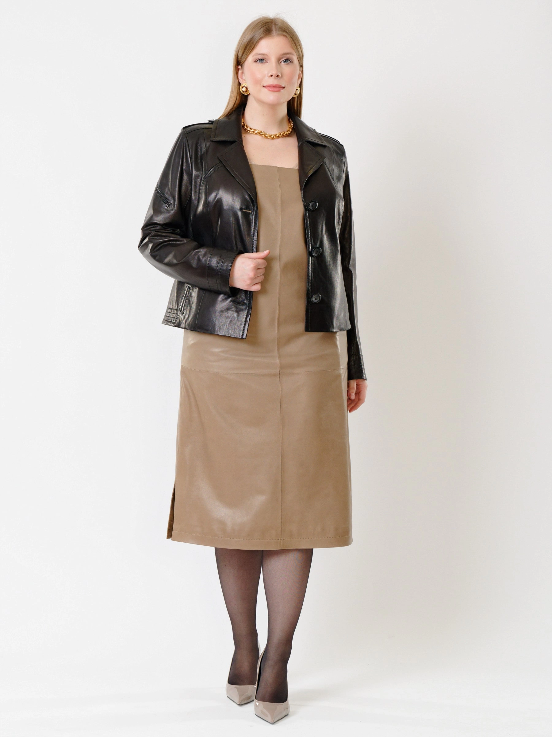 Товар кожаный комплект женский: куртка 304 + сарафан 01, черный/коричневый, р. 44, арт. 111230.
