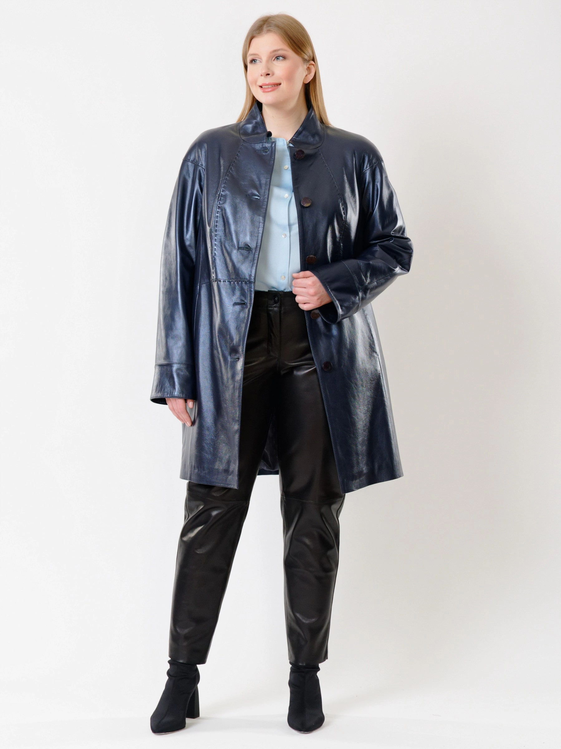 Товар кожаный комплект женский: куртка 378 + брюки 04, синий перламутр/черный, р. 46, арт. 111160. Рассчитан на сезон: демисезон.