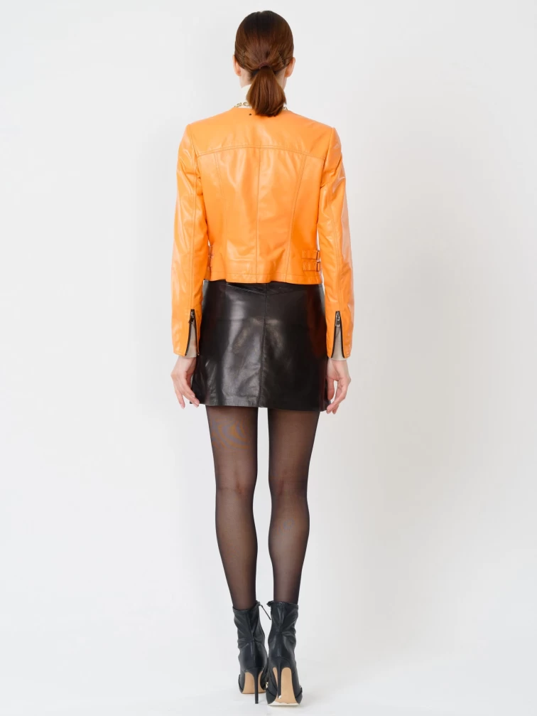 Кожаный комплект женский: Куртка 389 + Мини-юбка 03, оранжевый/черный, р. 42, арт. 111114