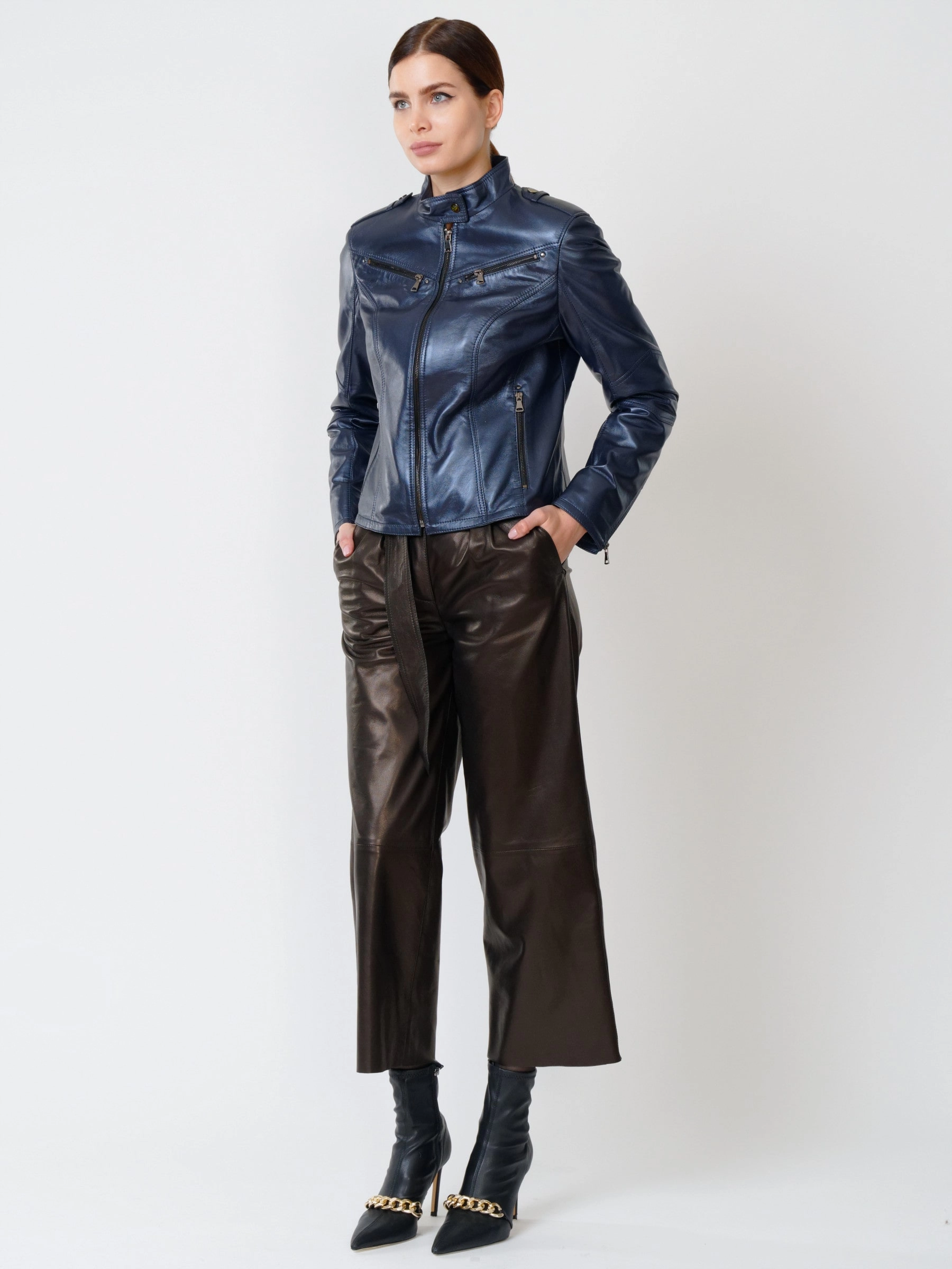 Кожаный комплект женский: Куртка 399 + Брюки 05, синий/черный, р. 44, арт. 111176