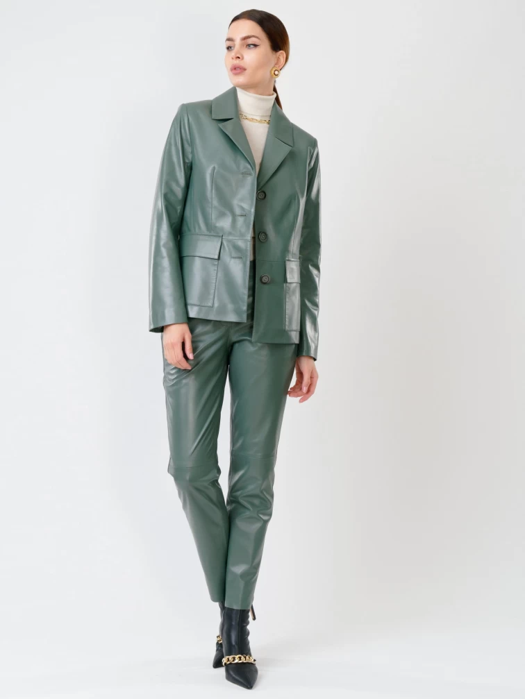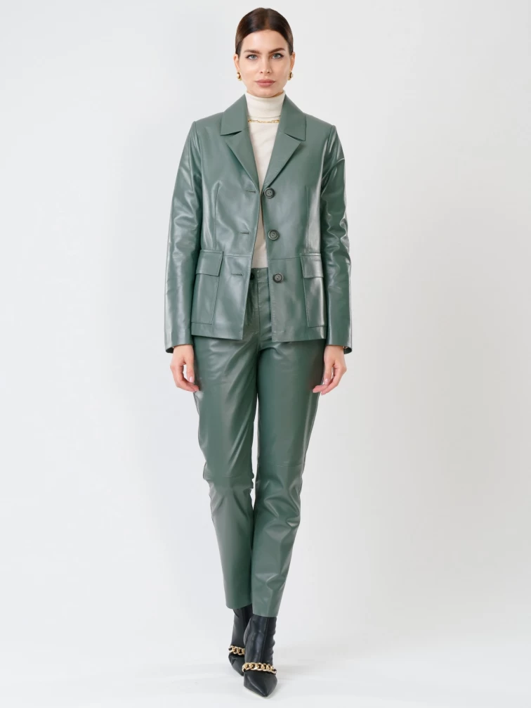 Кожаный костюм женский: Пиджак 3007 + Брюки 03, оливковый, р. 46, арт. 111136
