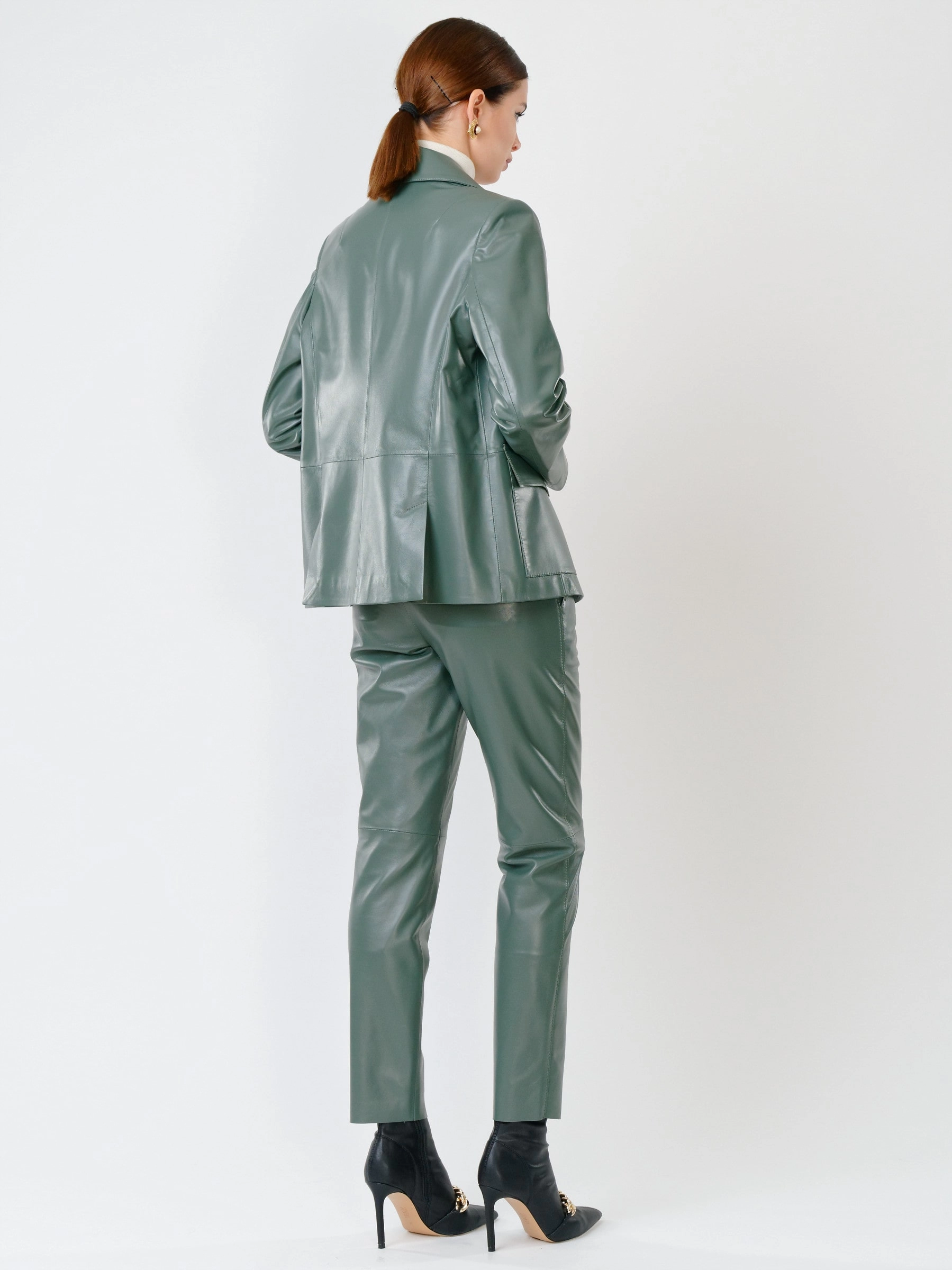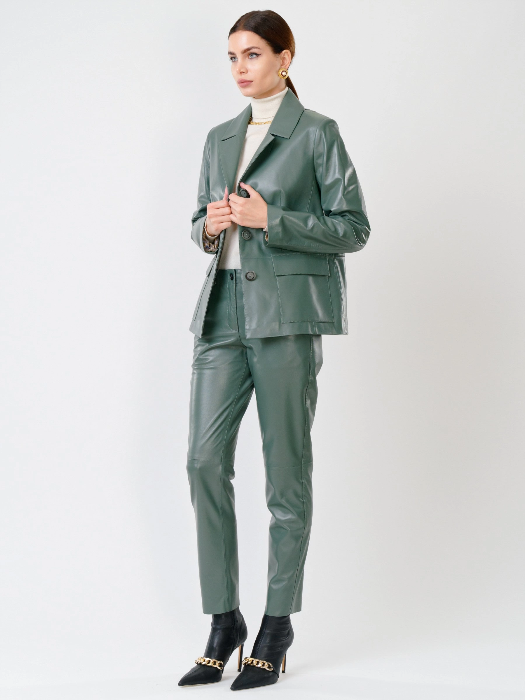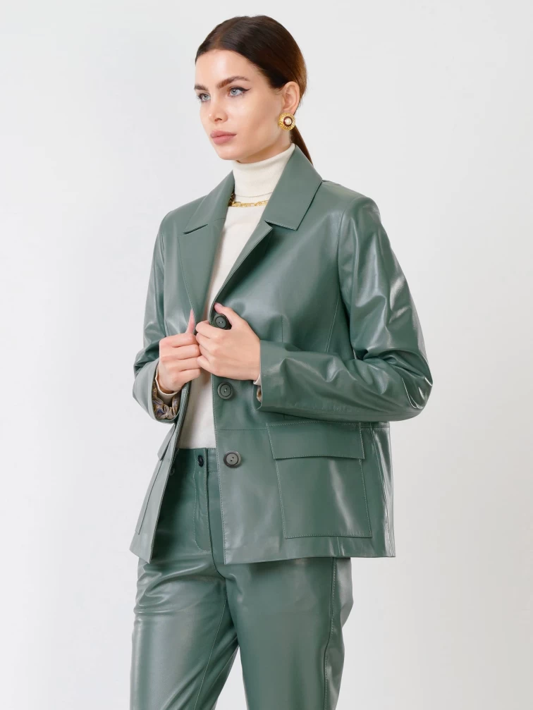 Товар кожаный костюм женский: пиджак 3007 + брюки 03, оливковый, р. 46, арт. 111136. Рассчитан на сезон: весна-лето.