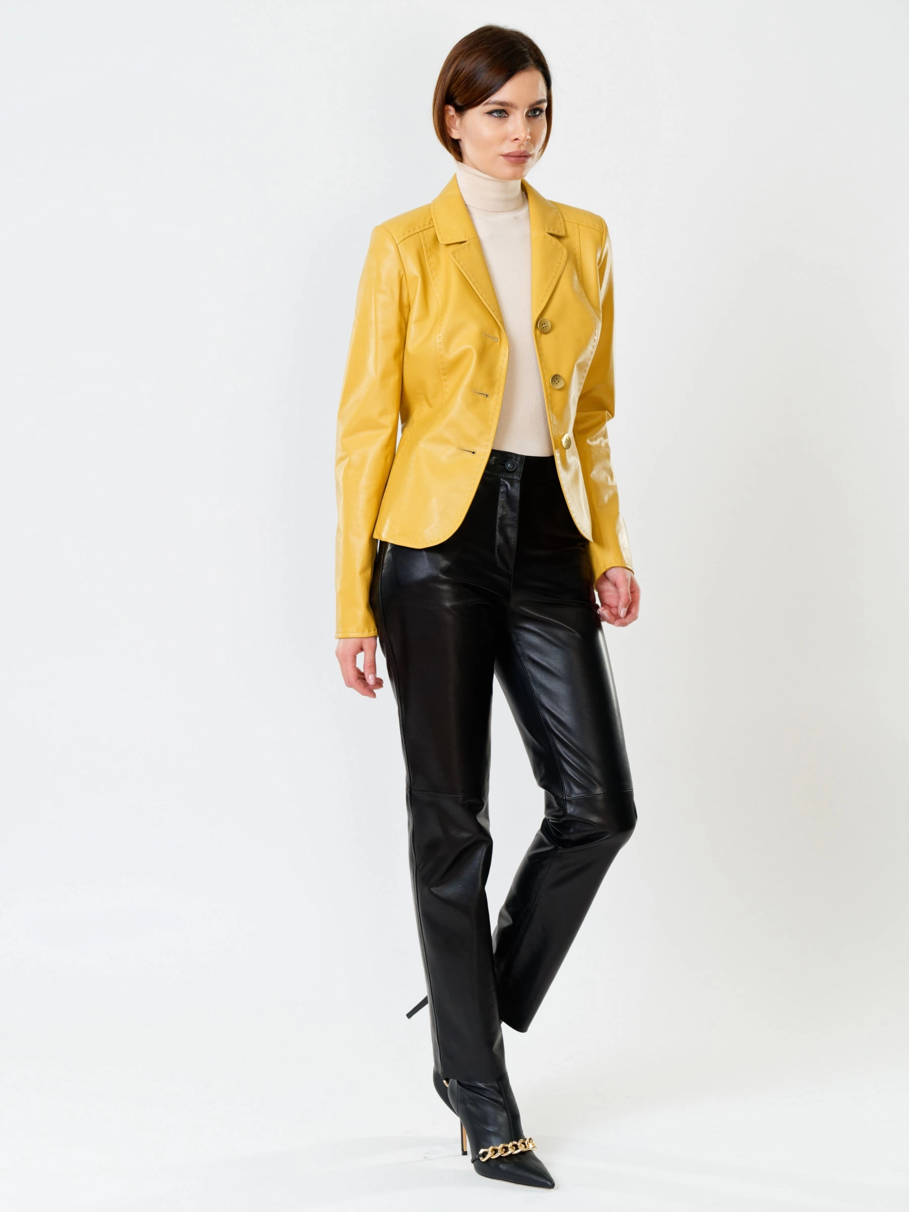 Кожаный костюм женский: Пиджак 316рс + Брюки 03, желтый/черный, р. 44, арт. 111152
