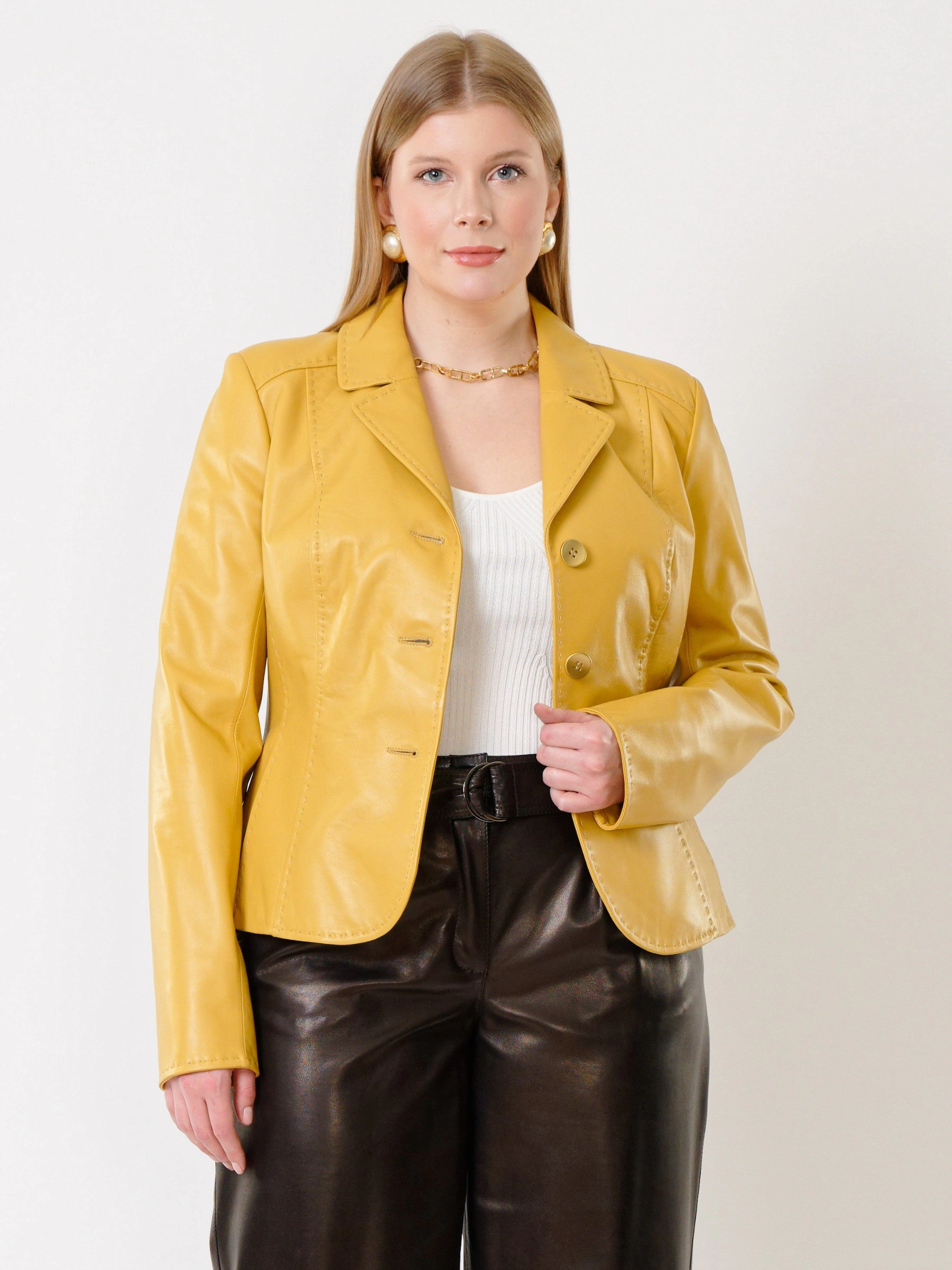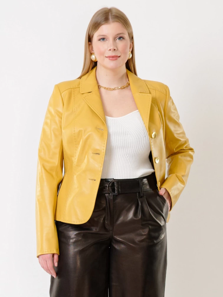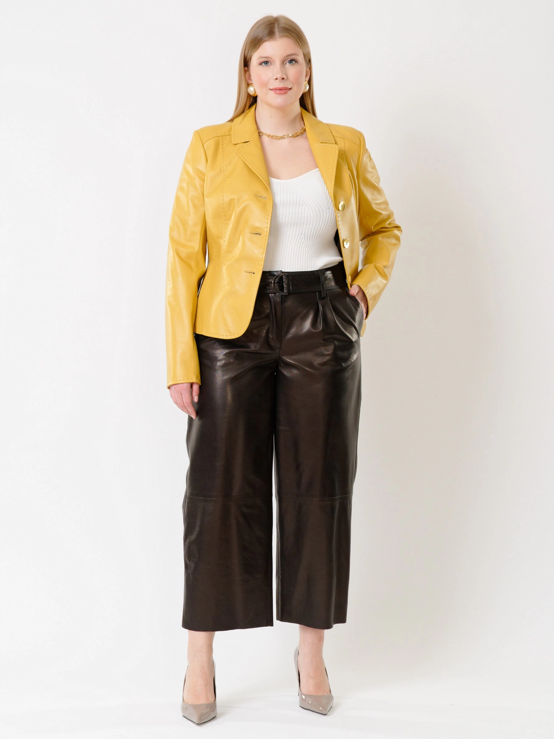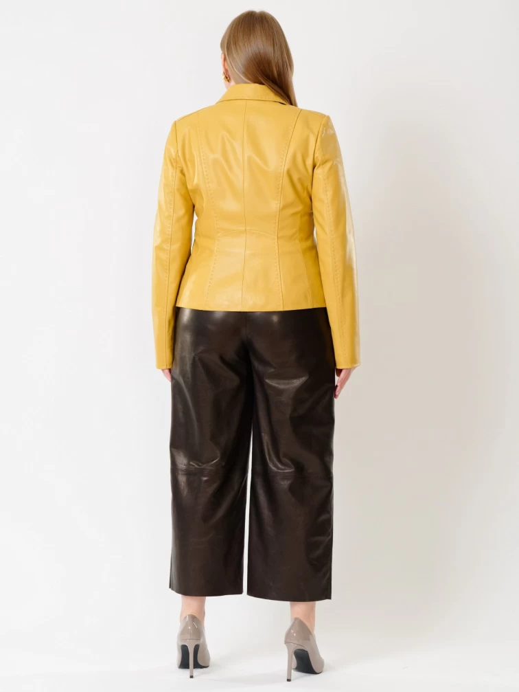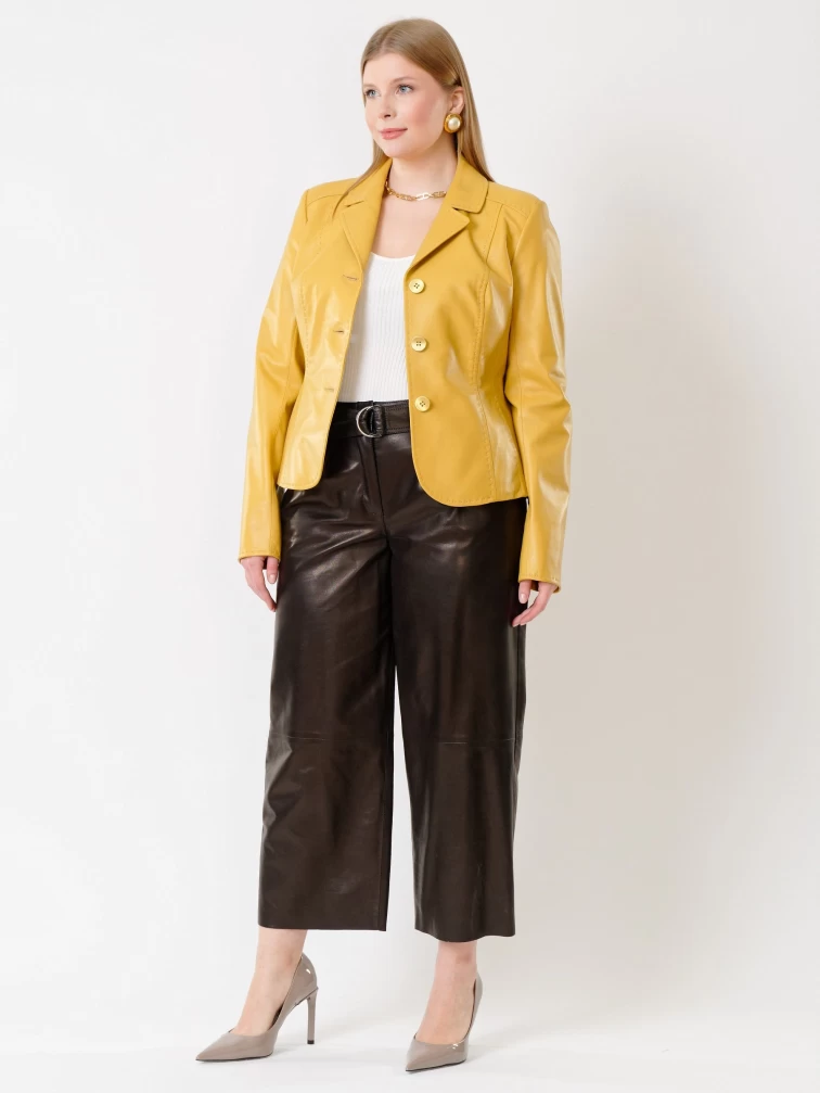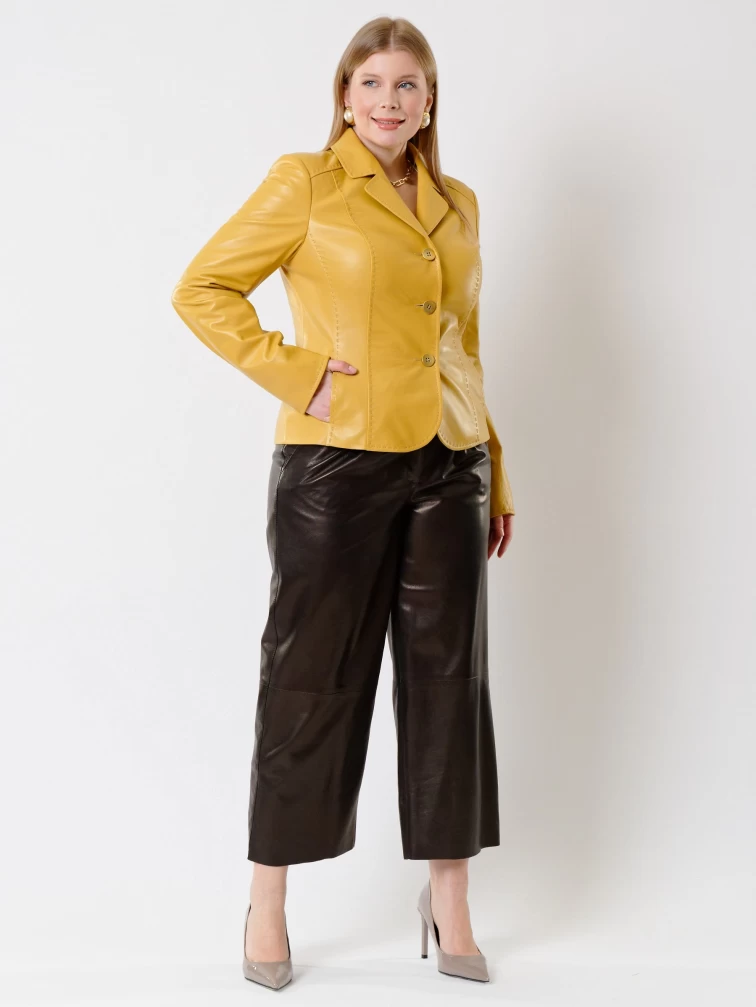 Товар кожаный костюм женский: пиджак 316рс + брюки 05, желтый/черный, р. 44, арт. 111151. Рассчитан на сезон: весна-лето.