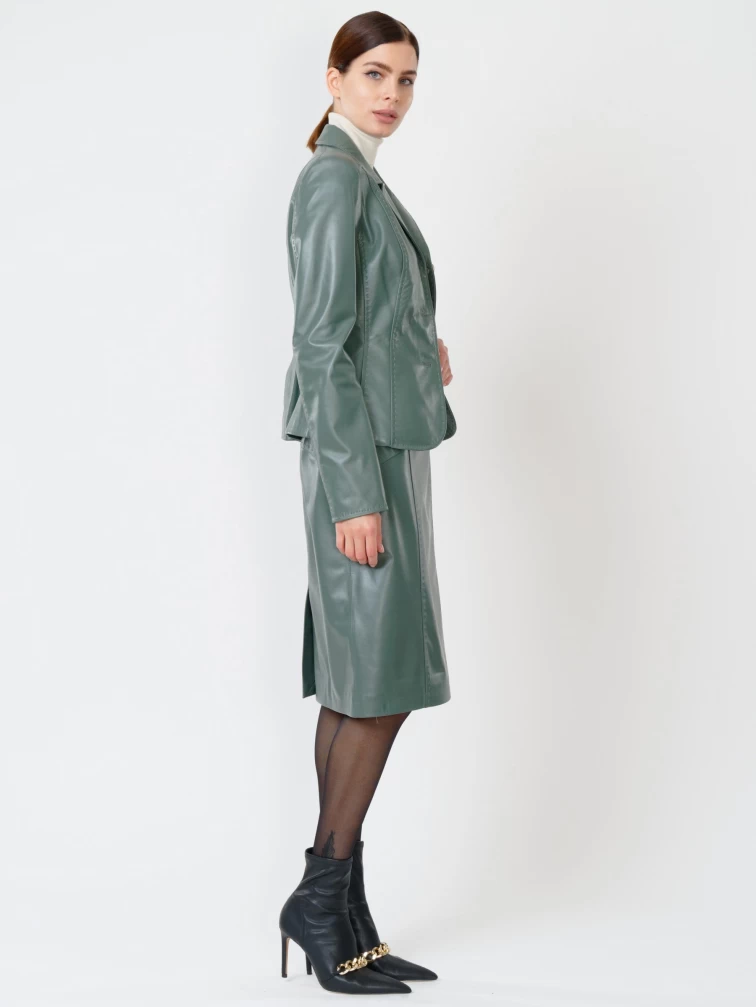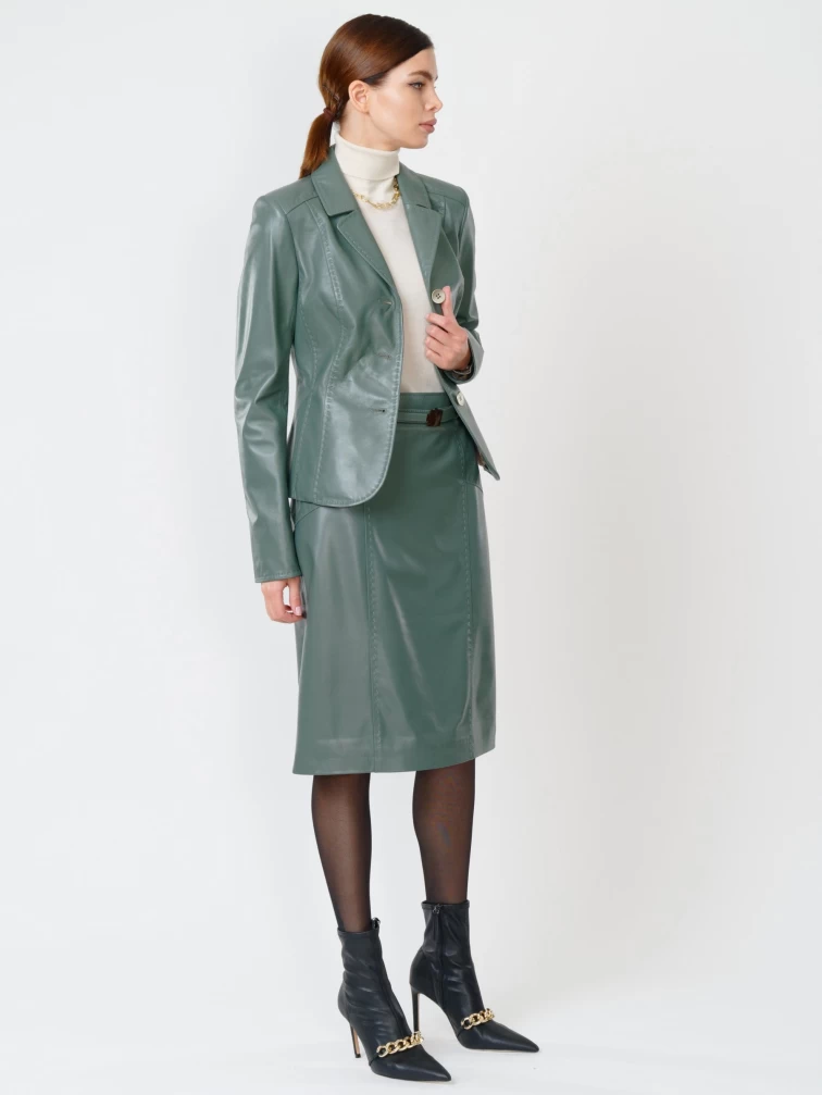 Товар кожаный костюм женский: пиджак 316рс + юбка-карандаш 02рс, оливковый, р. 44, арт. 111154. Рассчитан на сезон: весна-лето.