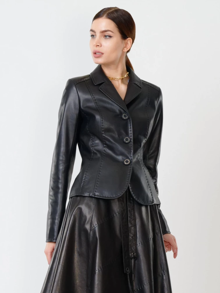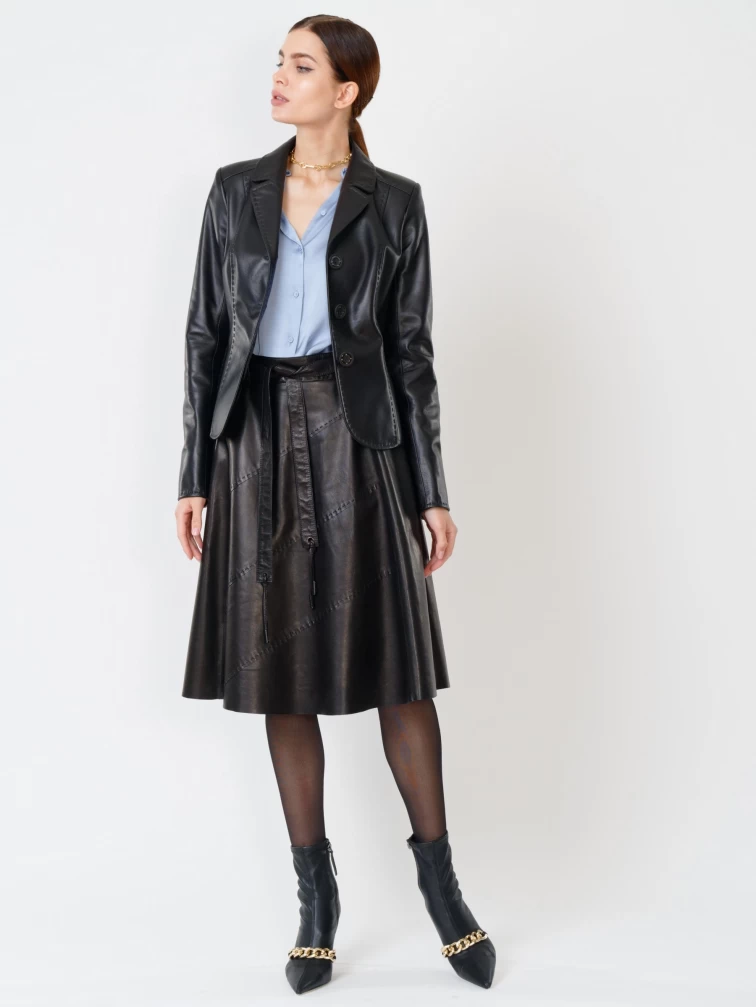 Товар кожаный костюм женский: пиджак 316рс + юбка 01рс, черный, р. 44, арт. 111150. Рассчитан на сезон: весна-лето.