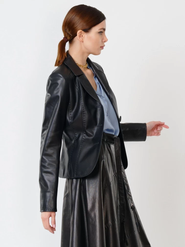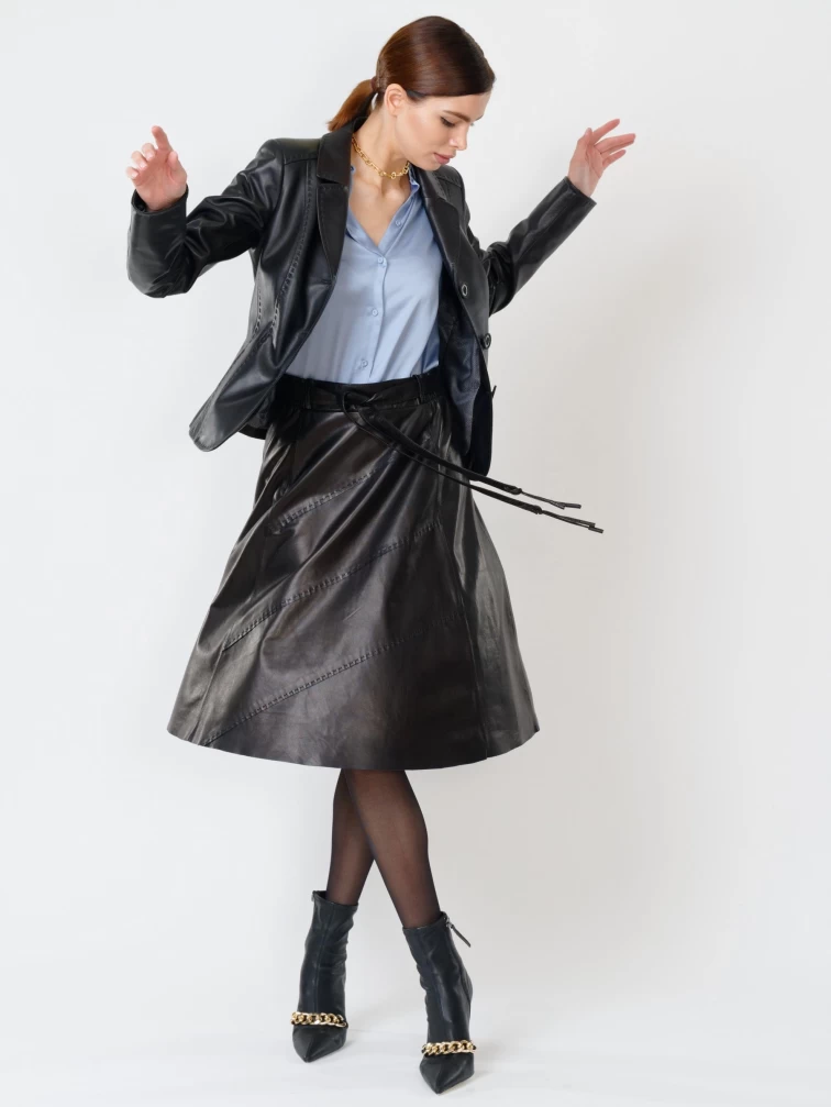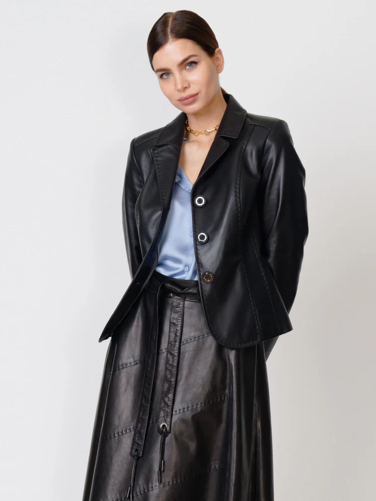 Кожаный костюм женский: Пиджак 316рс + Юбка 01рс, черный, р. 44, арт. 111150