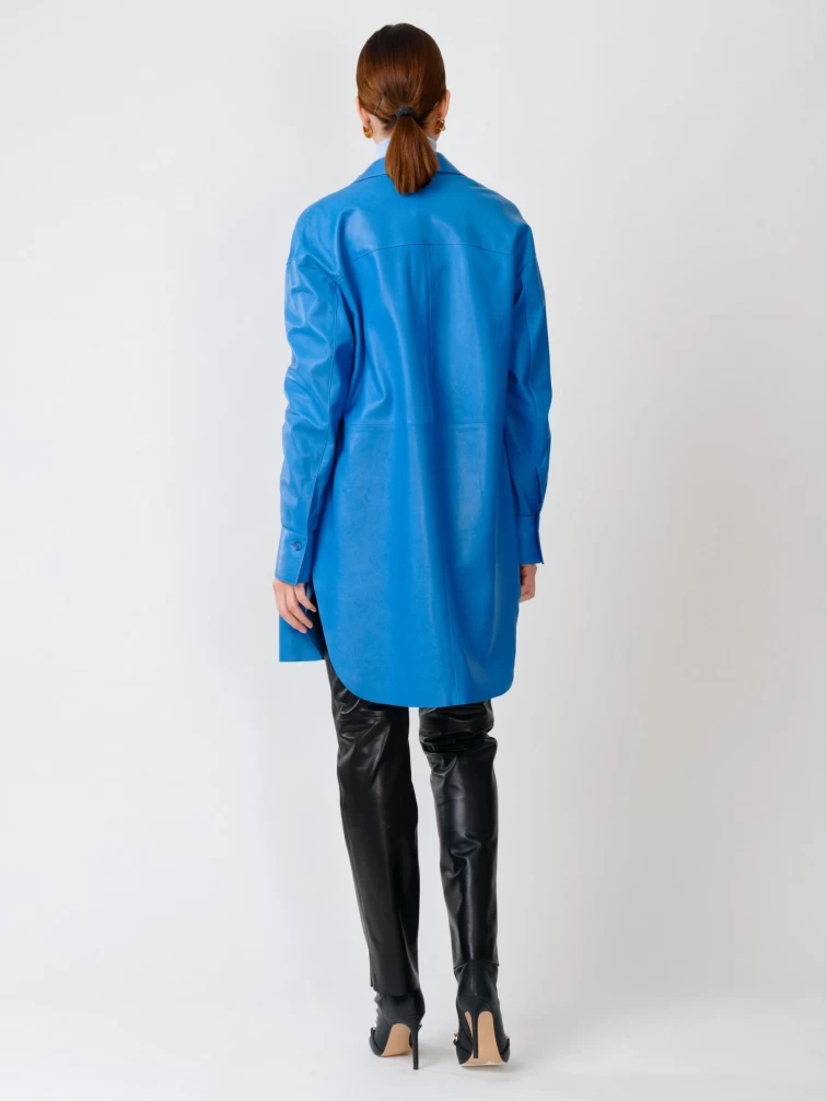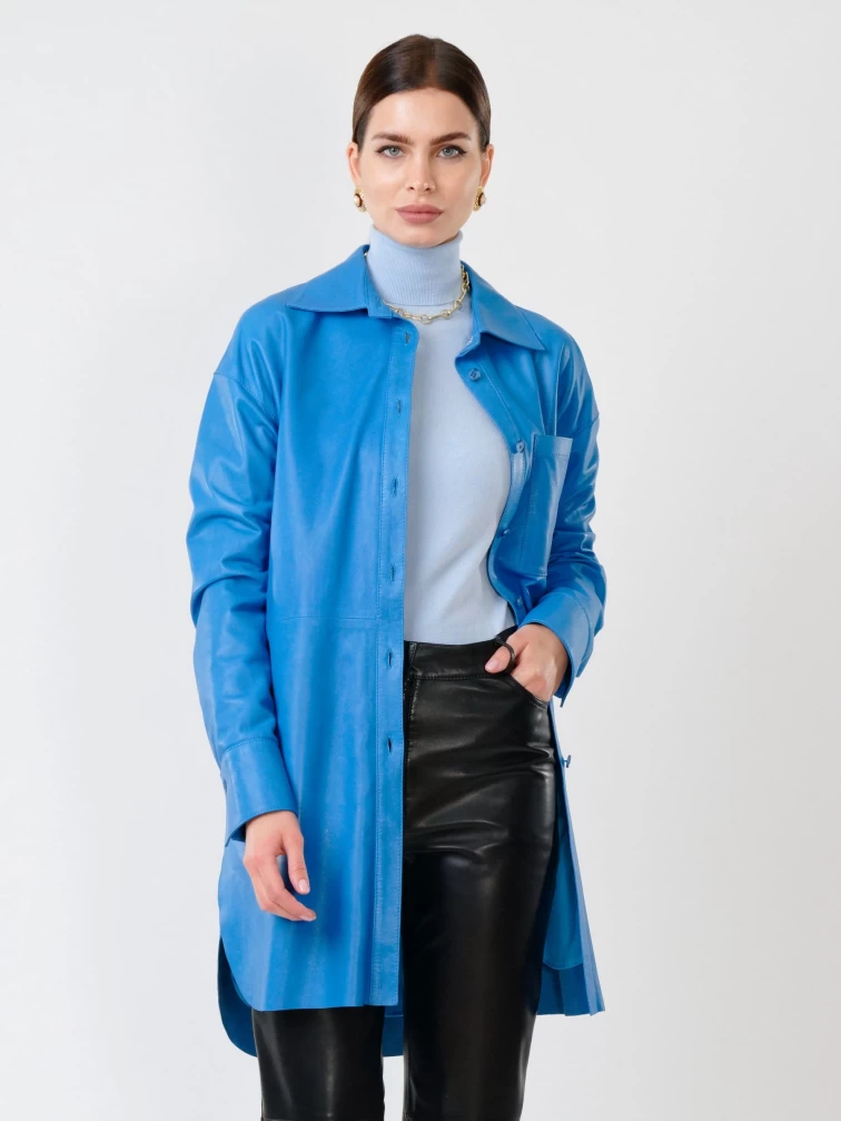 Товар кожаный костюм женский: рубашка 01_1 + брюки 02, голубой/черный, р. 46, арт. 111130. Рассчитан на сезон: весна-лето.