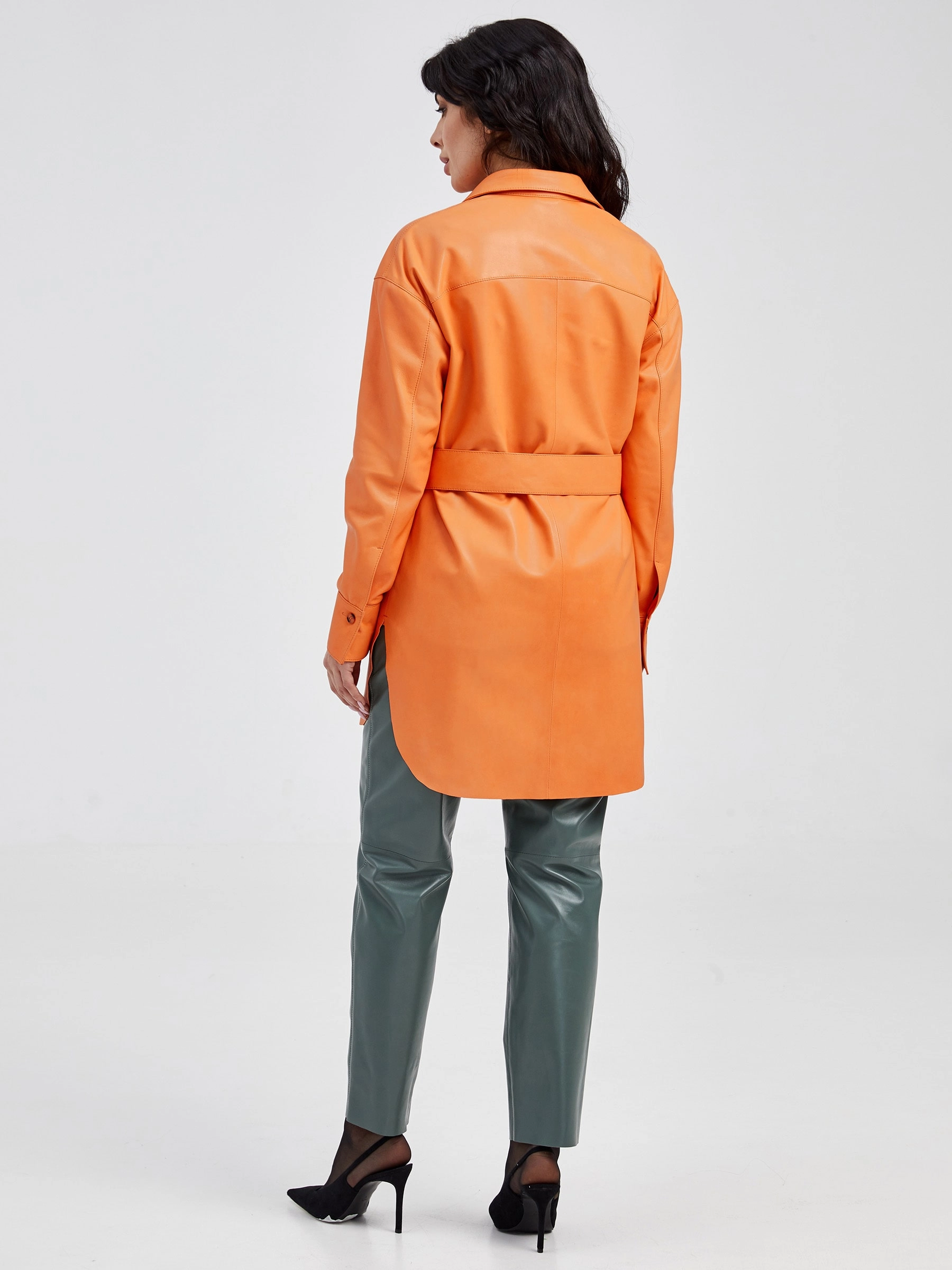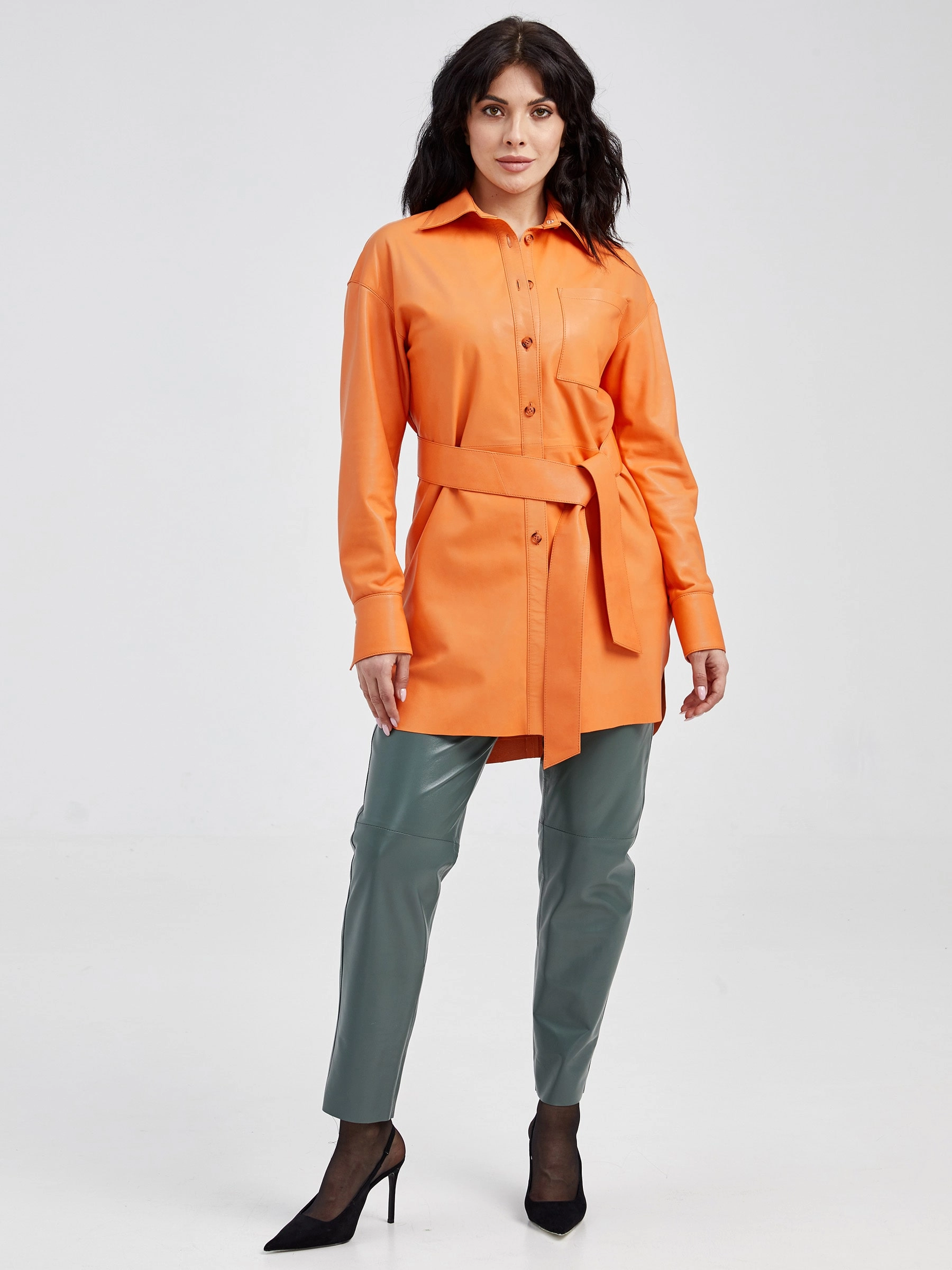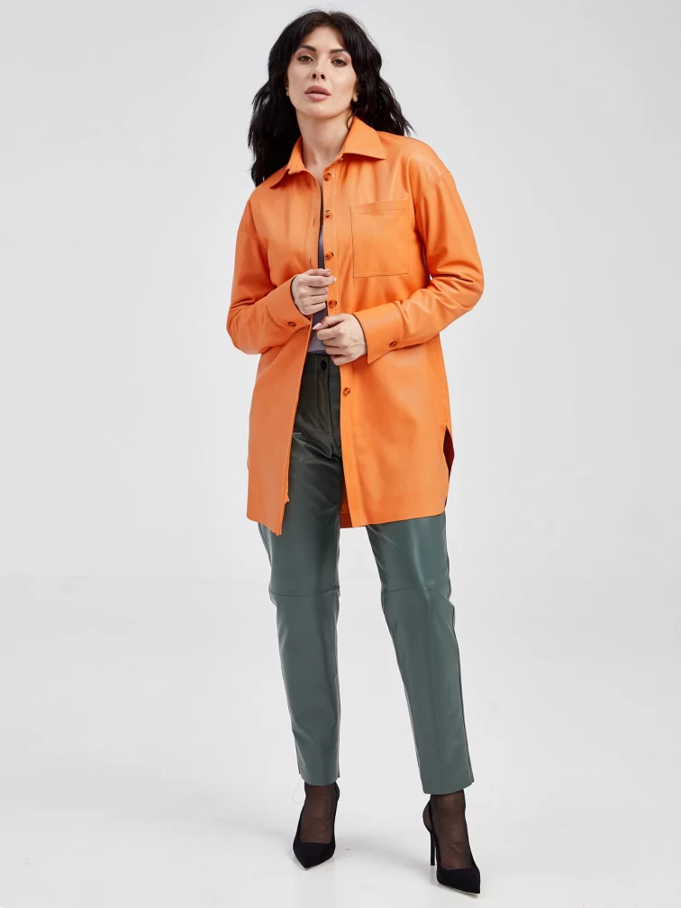 Товар кожаный костюм женский: рубашка 01_3 + брюки 03, оранжевый/оливковый, р. 46, арт. 111118. Рассчитан на сезон: весна-лето.