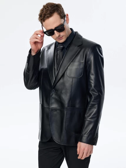 Кожаный пиджак премиум класса для мужчин 555, черный, размер 48, артикул 29730