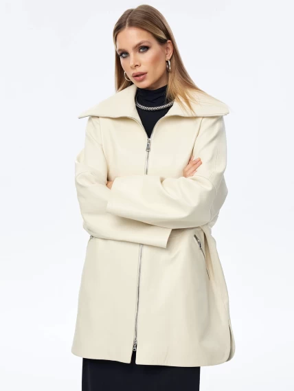 Кожаный плащ оверсайз на молнии для женщин премиум класса 3057, белый, размер 50, артикул 23530