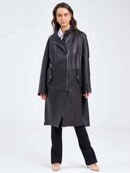 Женский кожаный плащ на молнии премиум класса 3041, черный, размер 48, артикул 91890