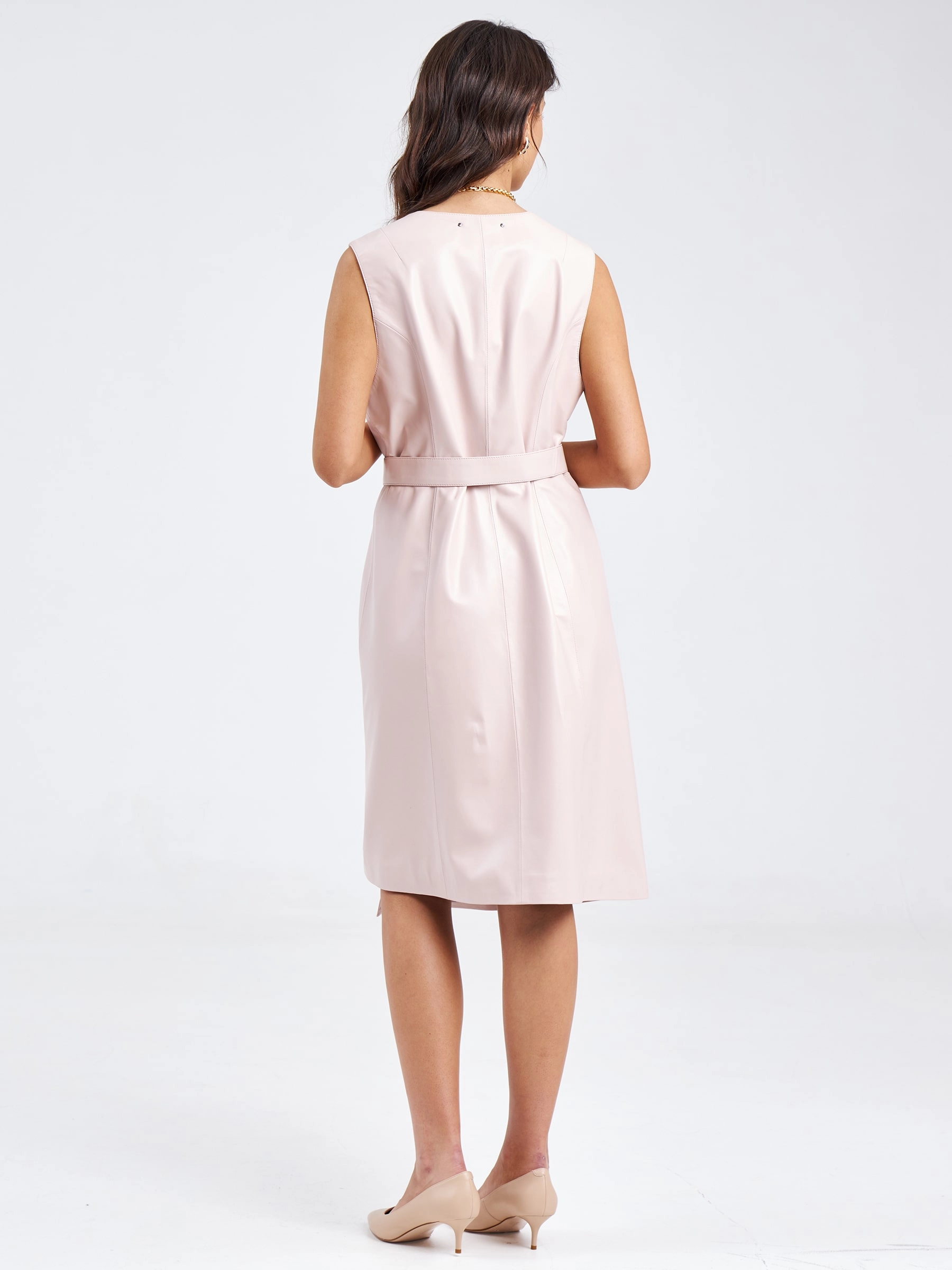 Кожаный женский сарафан из натуральной кожи 02, пудровый, размер 46, артикул 85190