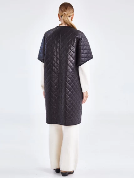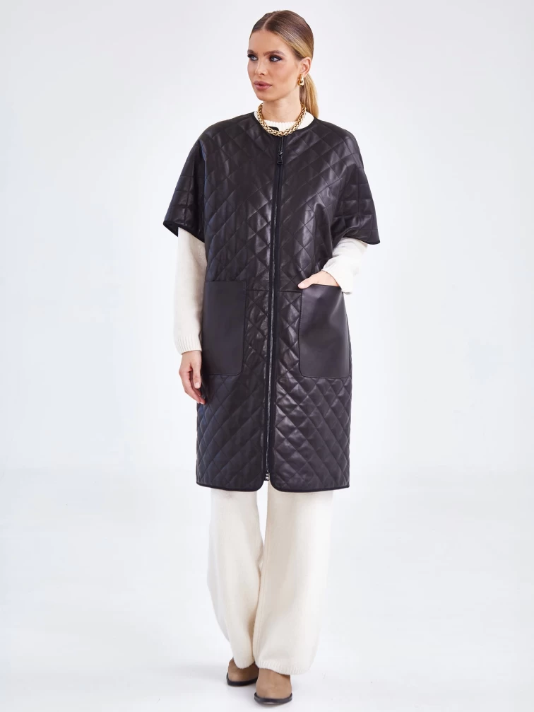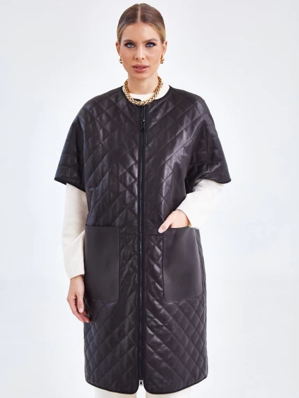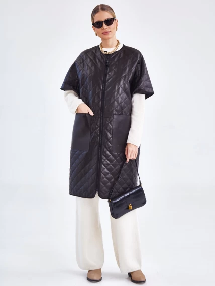Кожаный женский стеганый жилет премиум класса 07, черный, размер 44, артикул 91971