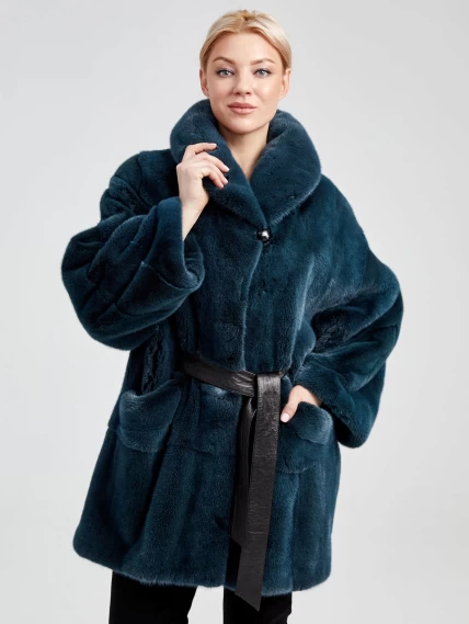 Товар шуба из меха норки с поясом для женщин 20701(в), зеленая, размер 44, артикул 33030 выполнен из норка с застежкой клипсы. Рассчитан на сезон: осень-зима. Длина изделия 75-90 см, силуэт прямой.
