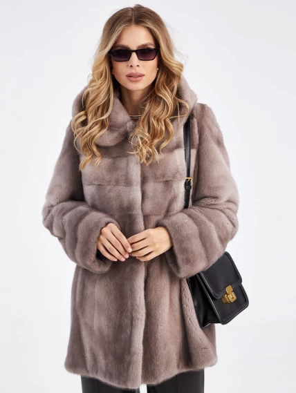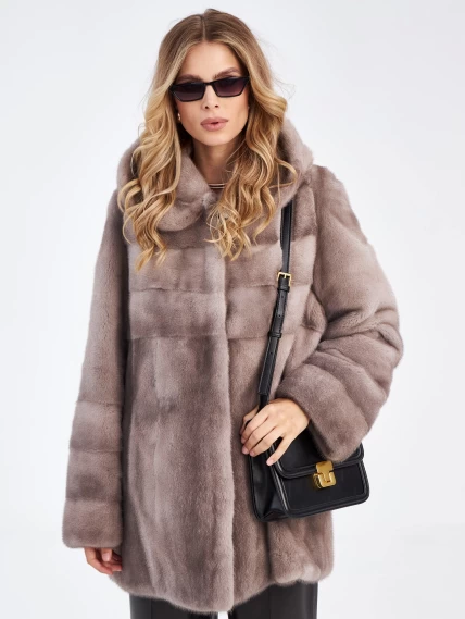 Женская куртка автоледи из меха норки Елена(к), серо-голубая, размер 50, артикул 33930