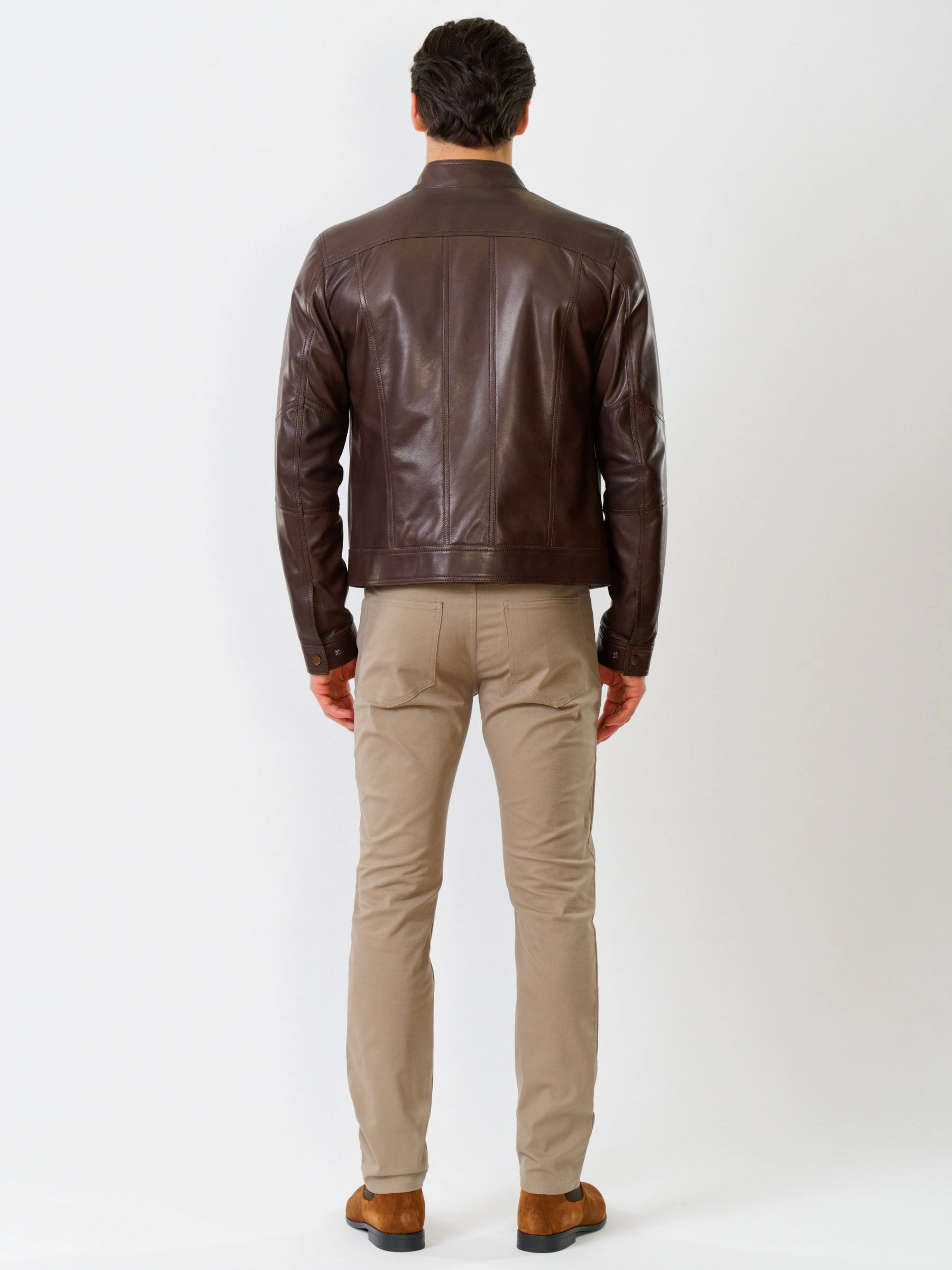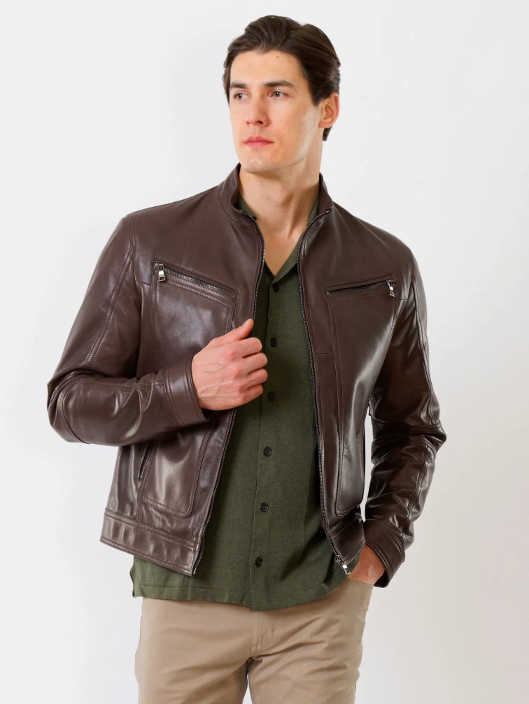 Кожаная куртка мужская 507, коричневая, размер 50, артикул 28591