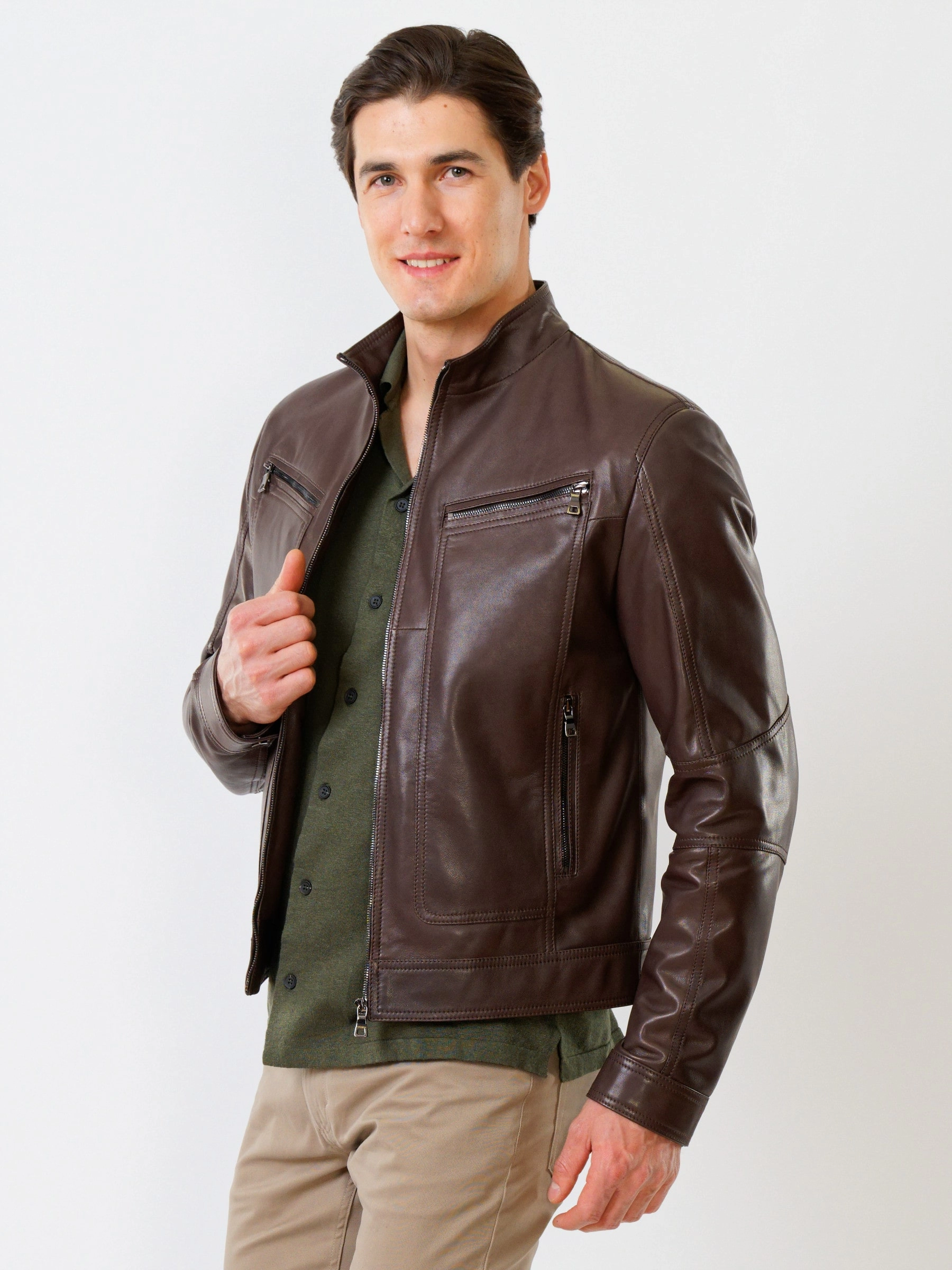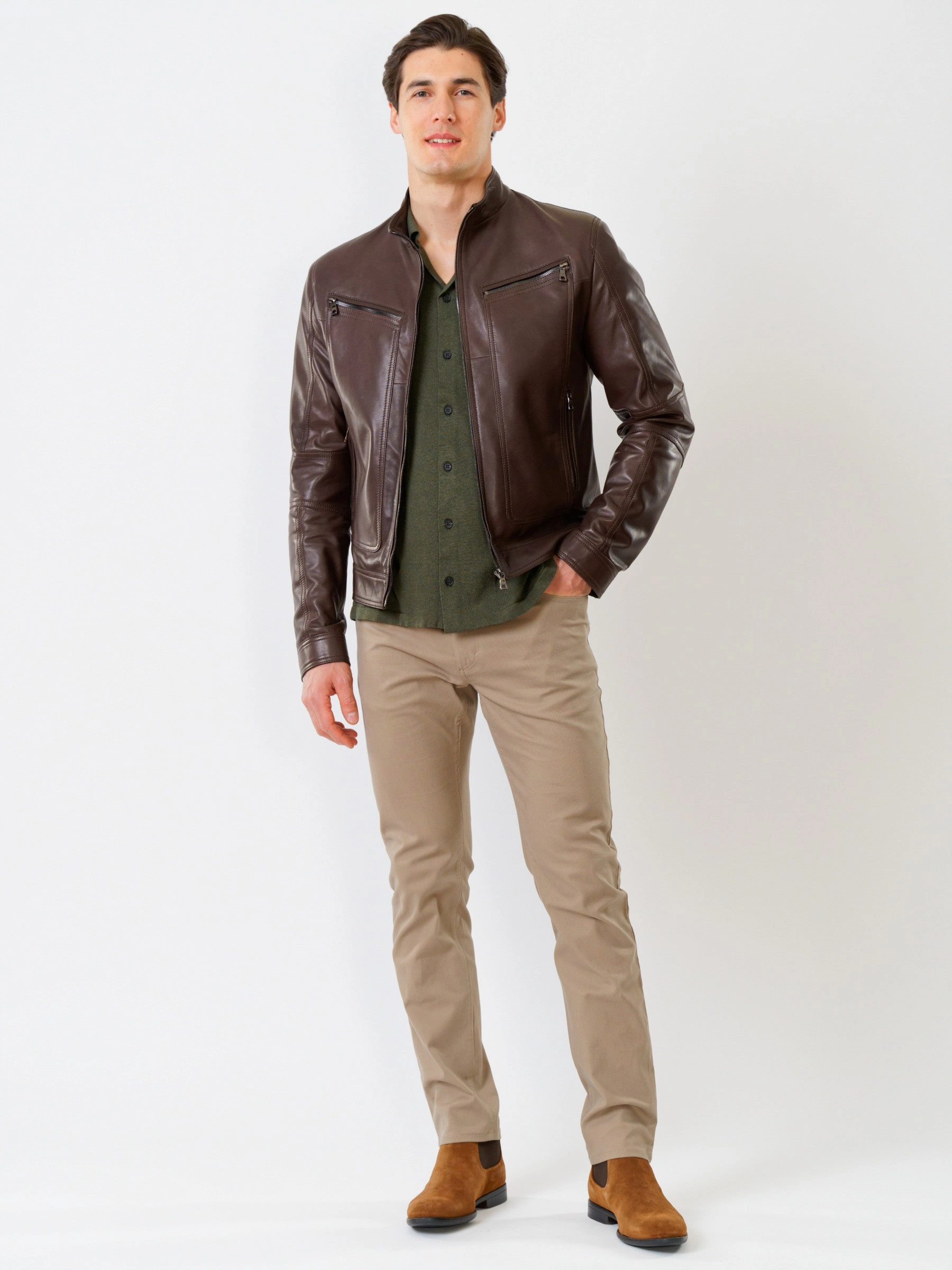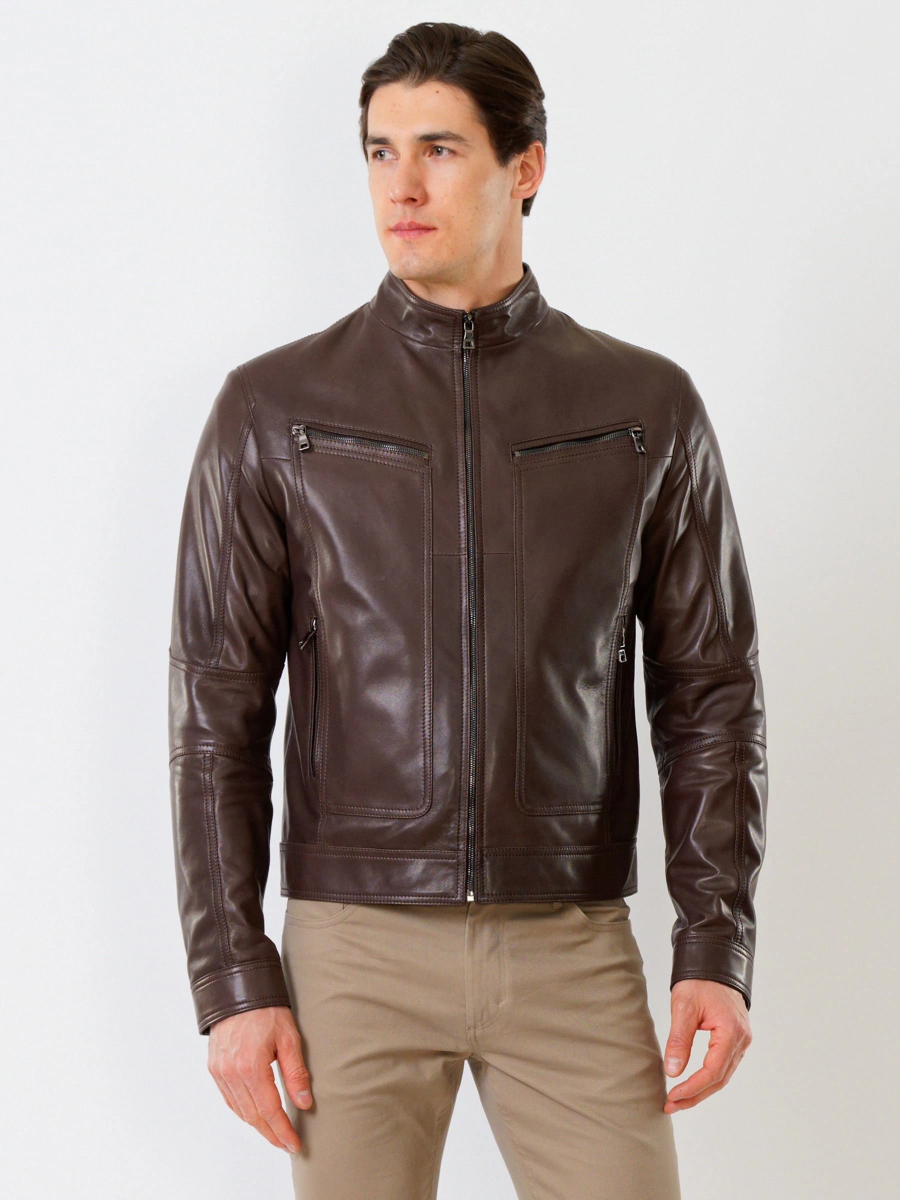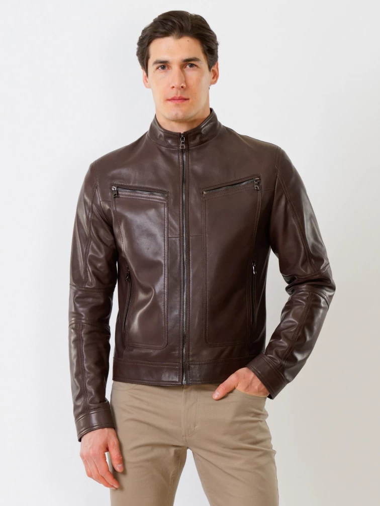 Товар кожаная куртка мужская 507, коричневая, размер 50, артикул 28591 выполнен из натуральной кожи с застежкой молния. Рассчитан на сезон: весна-лето. Длина изделия 68 см, силуэт полуприлегающий.