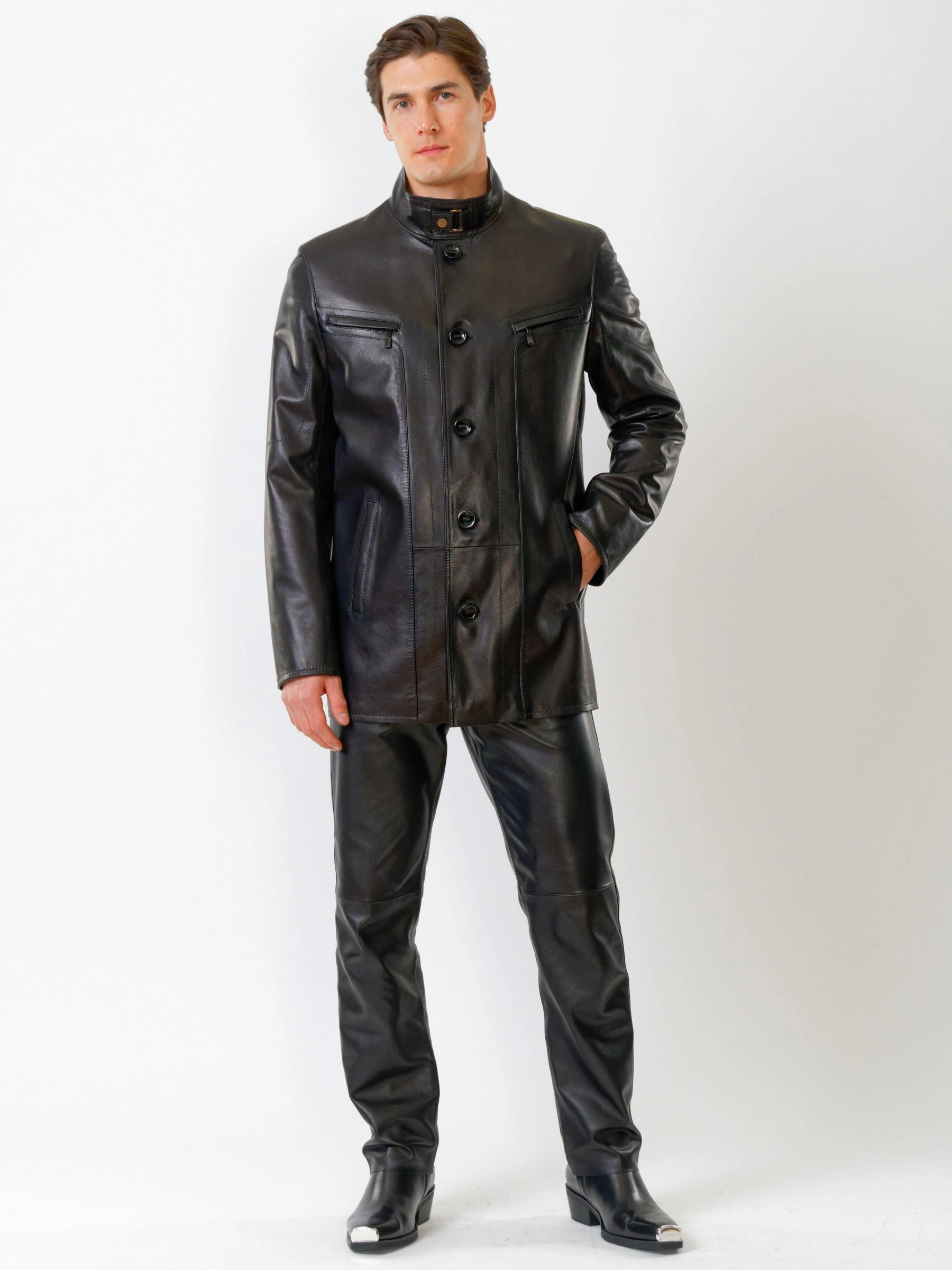 Товар демисезонный комплект мужской: куртка 517нв + брюки 01, черный, р. 48, артикул 140490 выполнен из натуральной кожи. Рассчитан на сезон: демисезон.