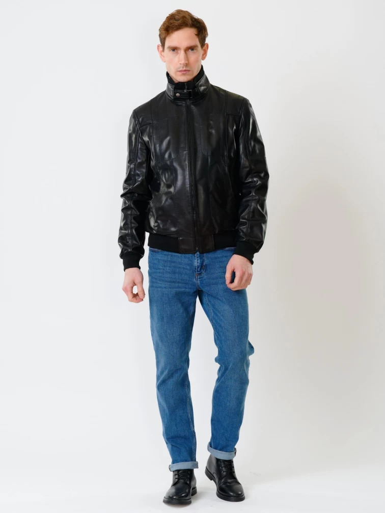 Товар кожаная куртка бомбер мужская премиум класса 521, черная, размер 48, артикул 28550 выполнен из натуральной кожи с застежкой молния. Рассчитан на сезон: весна-лето. Длина изделия 69 см, силуэт свободный.
