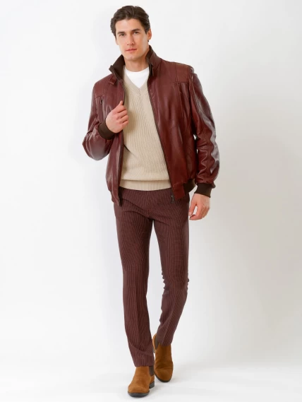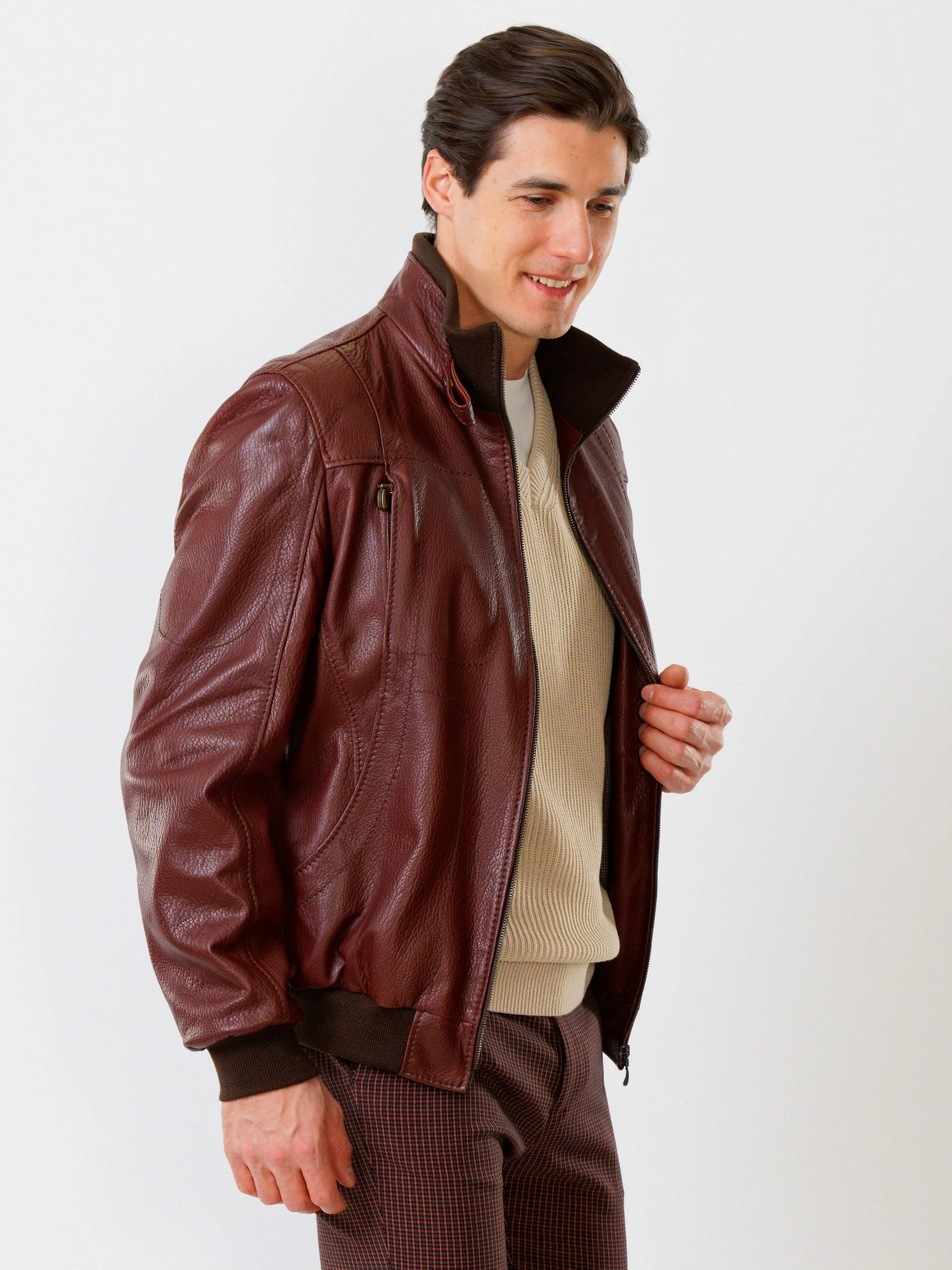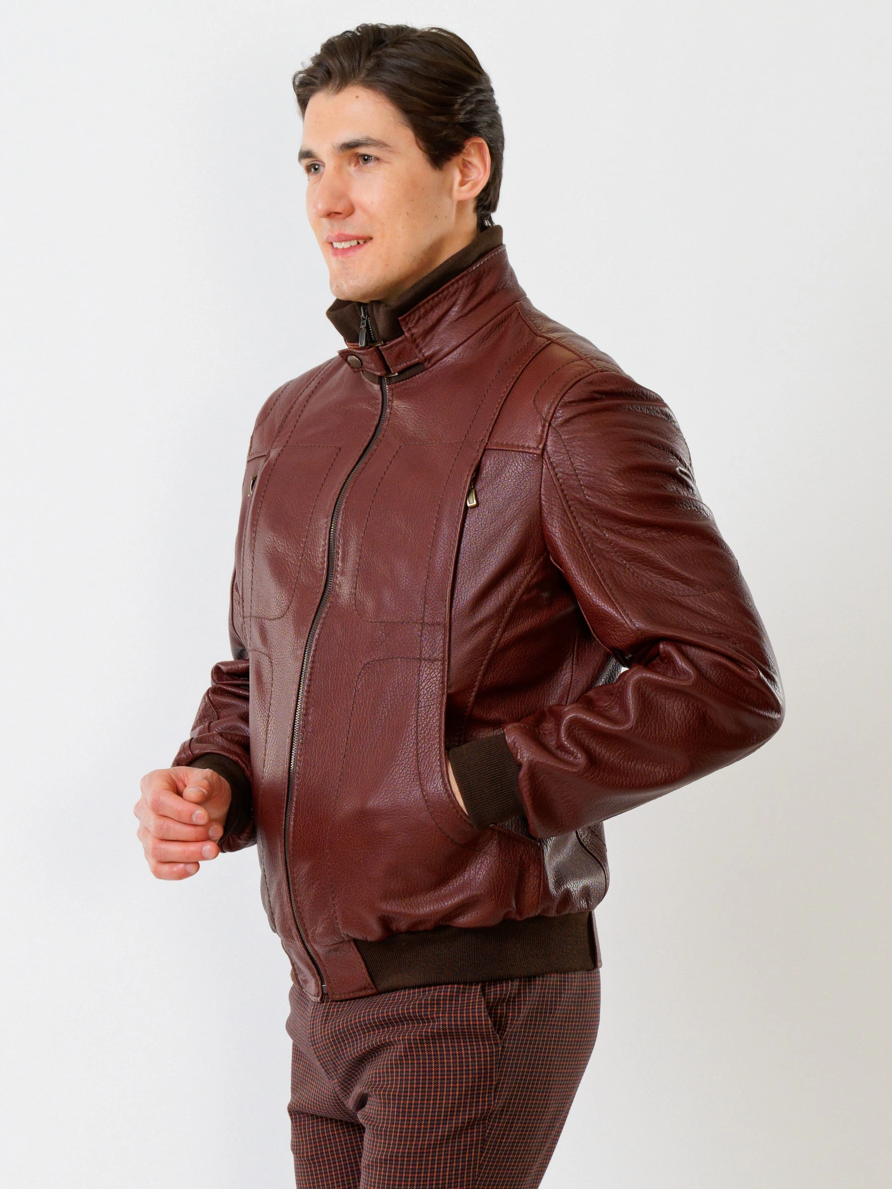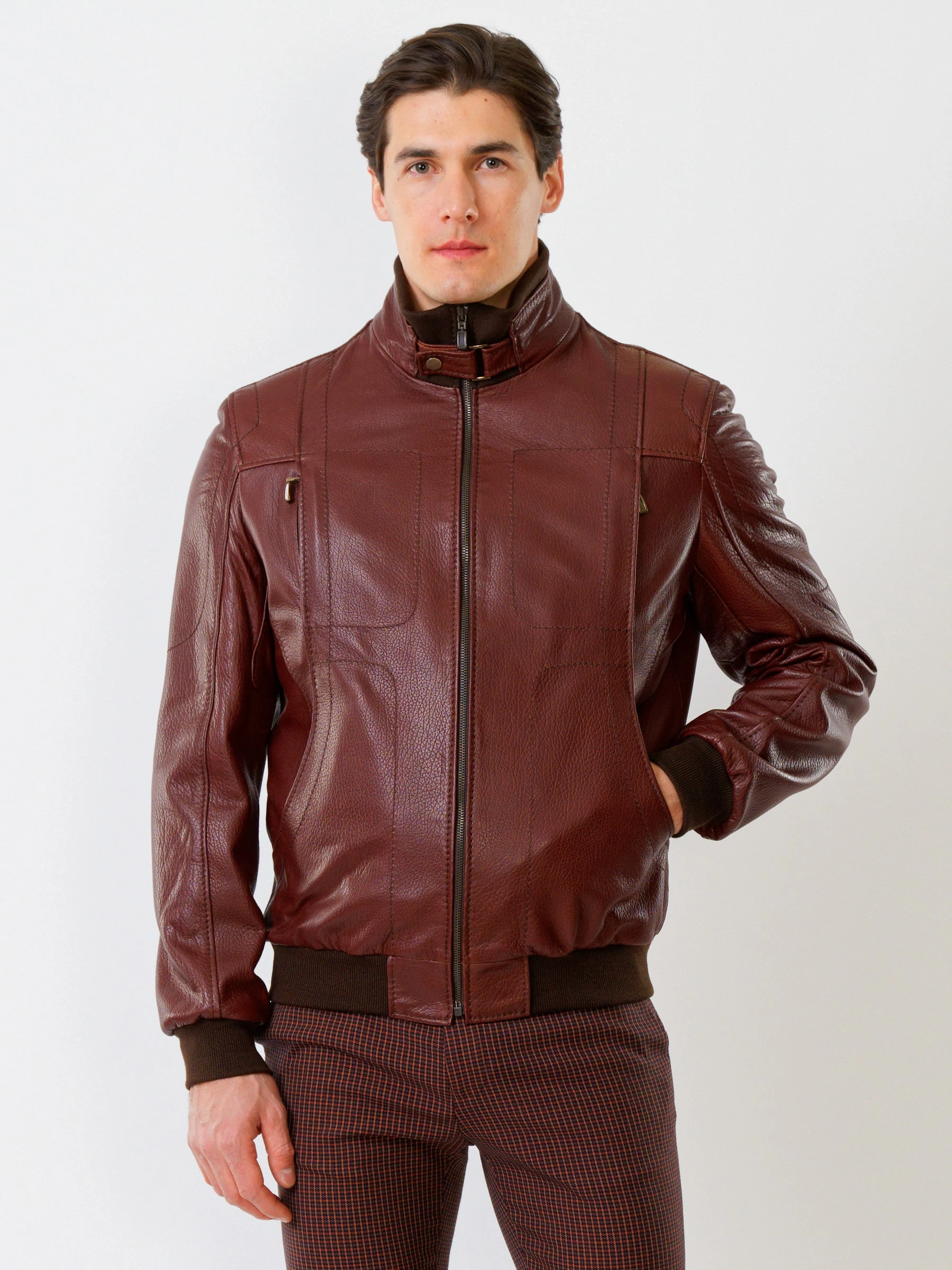 Кожаная куртка бомбер мужская премиум класса 521, коньячная, размер 48, артикул 28631